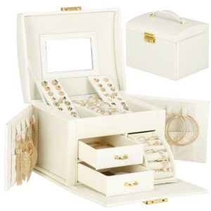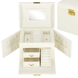 (DL) Ékszertároló és rendszerező doboz, MDF, ökobőr, 17,5 x 12 x 13,5 cm, krém