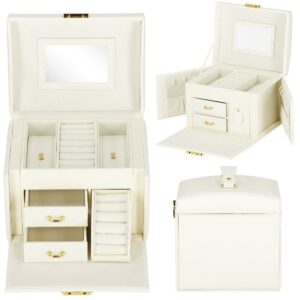 „(DL) Ékszertároló és rendszerező doboz, MDF, ökobőr, 17,5 x 12 x 13,5 cm, krém” értékelése elsőként