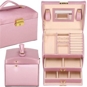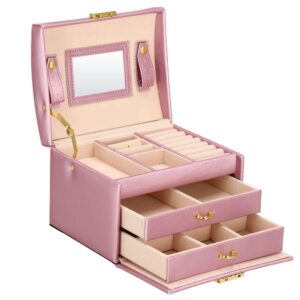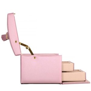 (DL) Ékszertároló és rendszerező doboz, MDF, ökobőr és velúr, 17,5 x 14 x 12,5 cm, rózsaszín