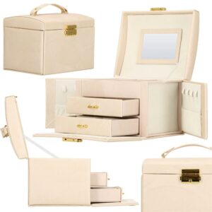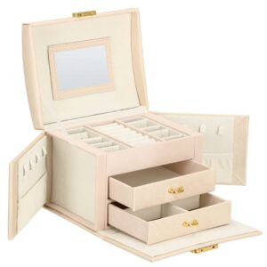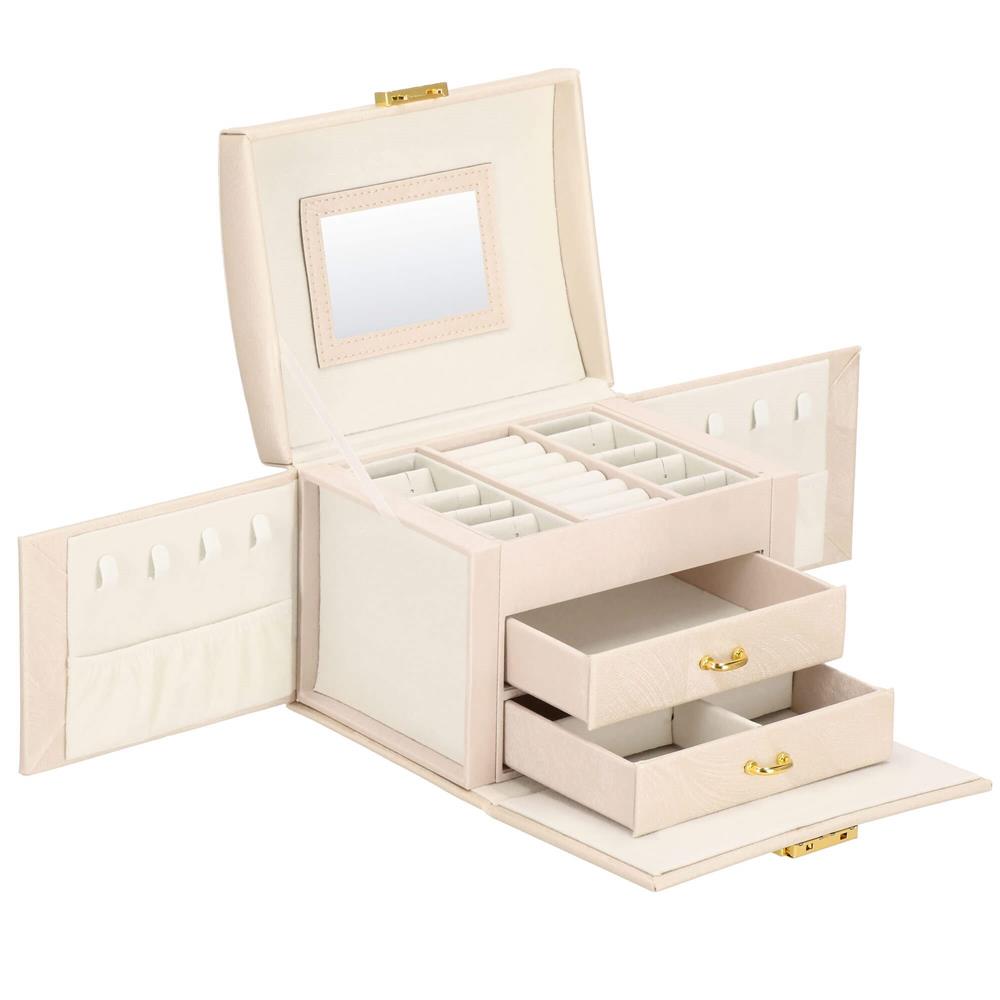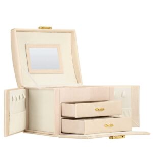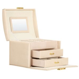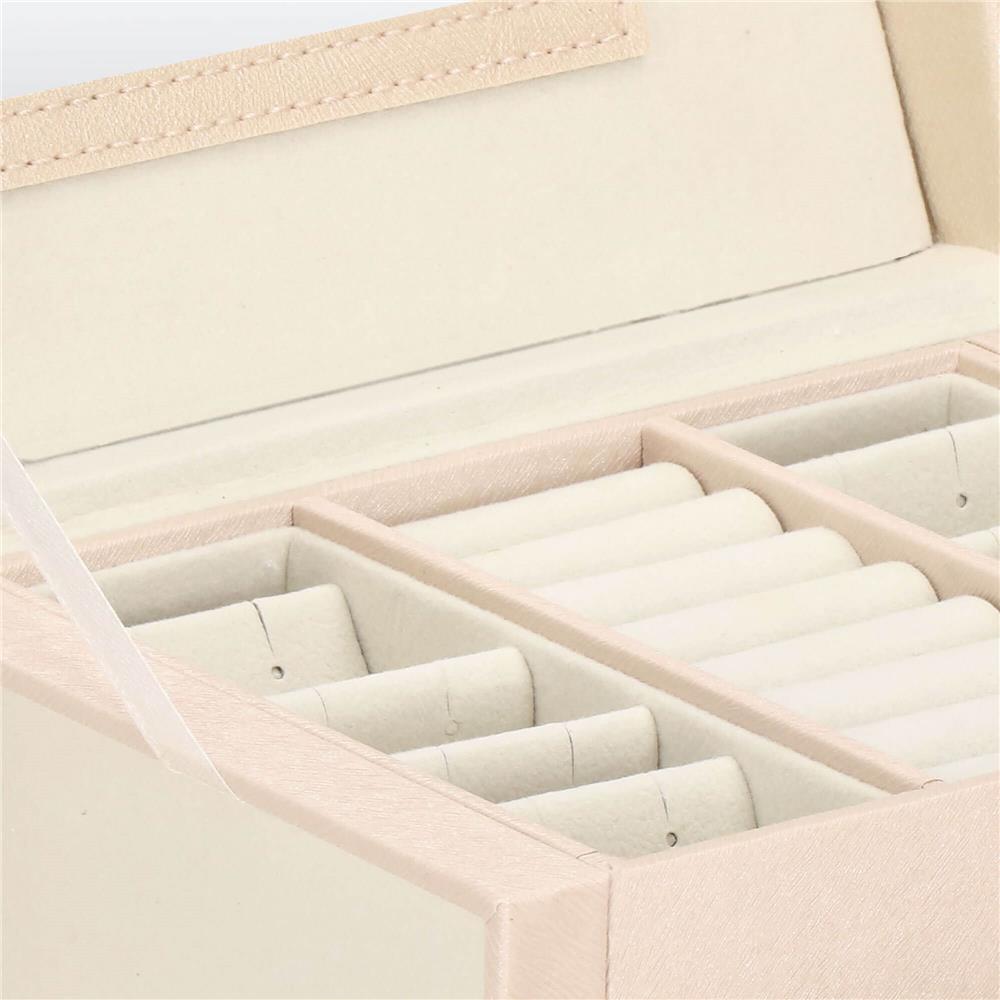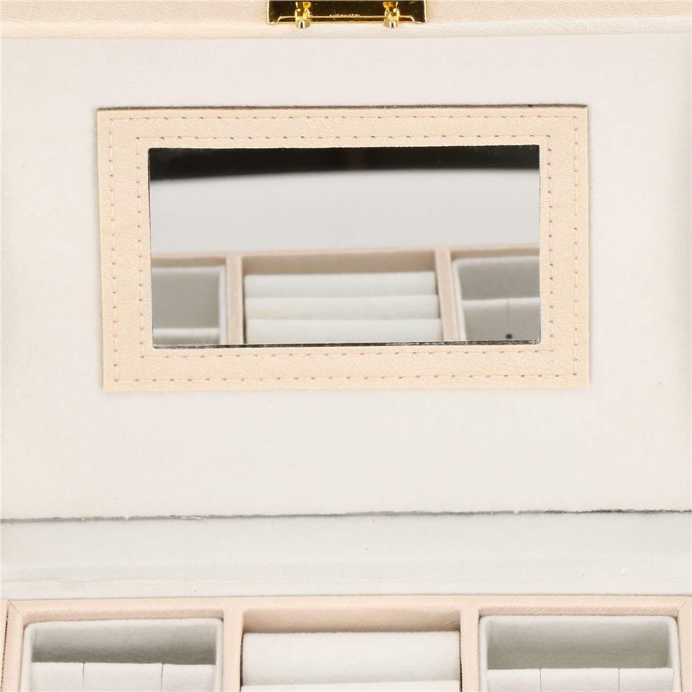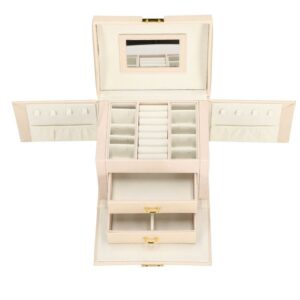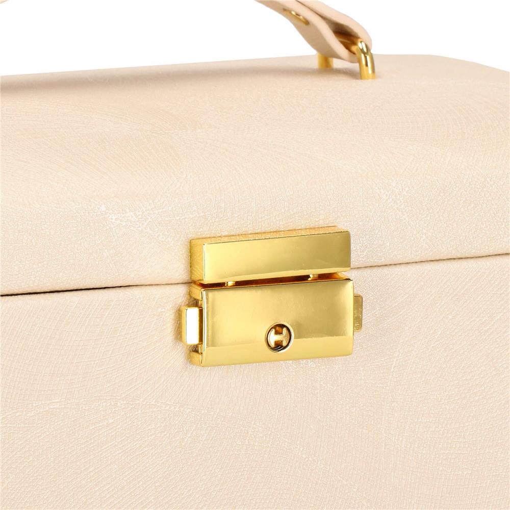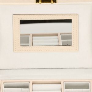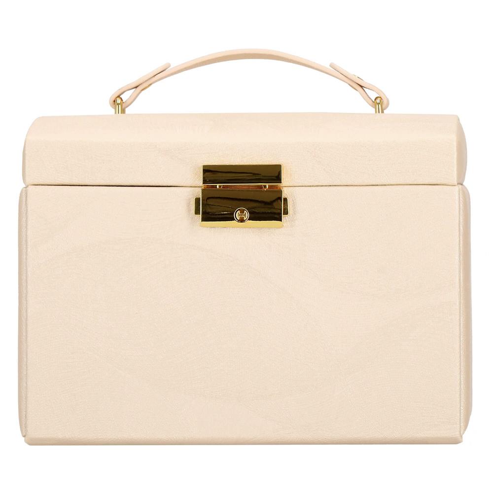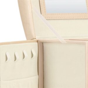 Cutie depozitare si organizare bijuterii, piele ecologica + velur, 18 x 13,5 x 14cm, crem