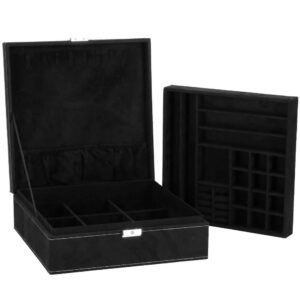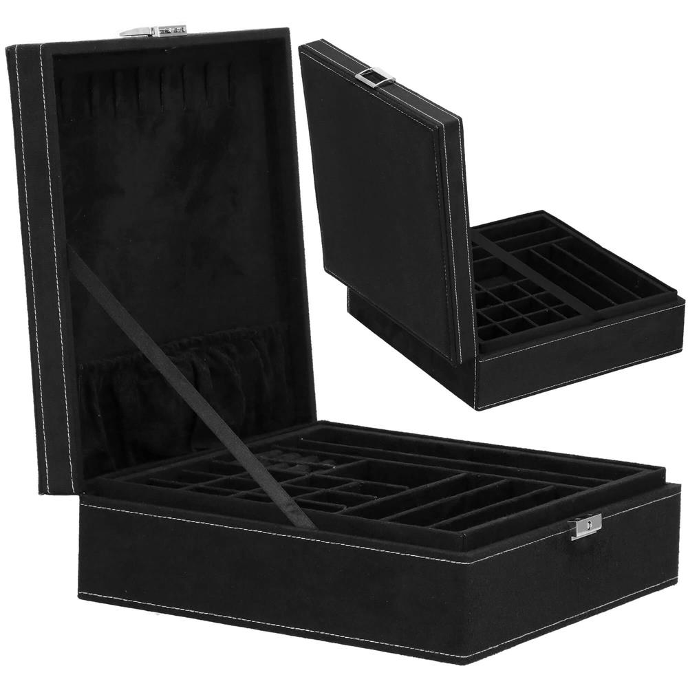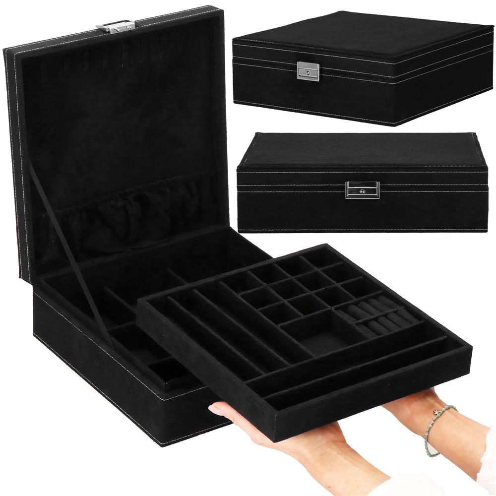 (DL) Ékszertároló és rendszerező doboz, velúr, 26 x 26 x 9 cm, fekete