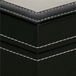 Carcasa cutiei pentru ceasuri este realizata cu atentie la cele mai mici detalii. Se prezinta foarte eficient, elegant si pe langa functia sa cunoscuta, va fi fara indoiala un decor atractiv intr-o forma clasica, care va atrage privirea si va decora imprejurimile. Organizator sub forma unei cutii solide, in interior are o captuseala din material velur extrem de moale si delicat la atingere. In interiorul compartimentelor se gasesc perne, modelate pentru a gazdui bratari si curele. Fiecare ceas isi va gasi locul si datorita interiorului impartit in compartimente, nu se va freca de celelalte si nu se va zgaria. Puteti plasa cele mai valoroase accesorii in ele.