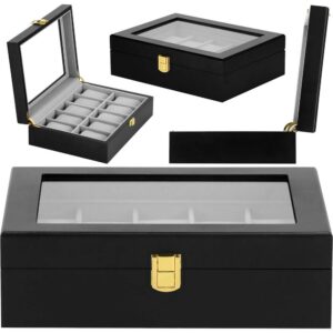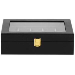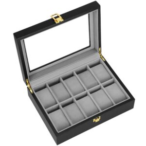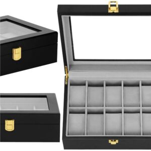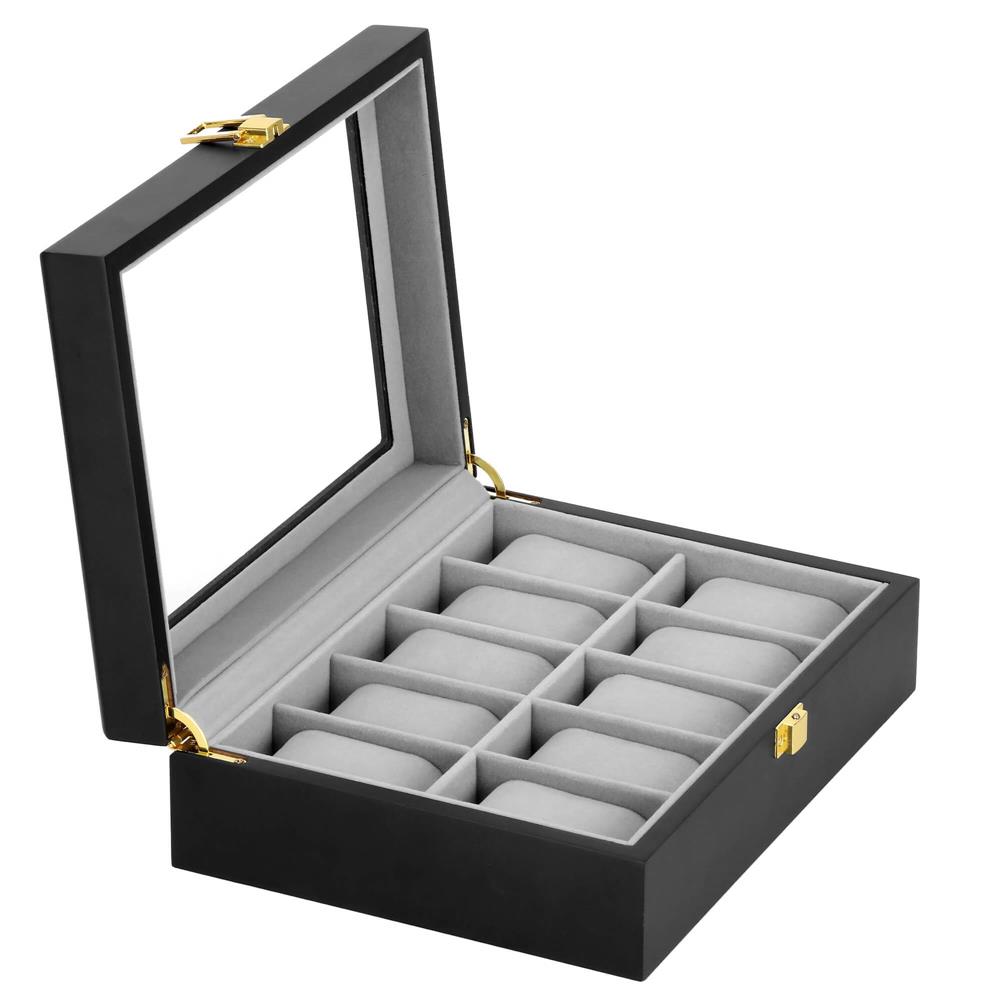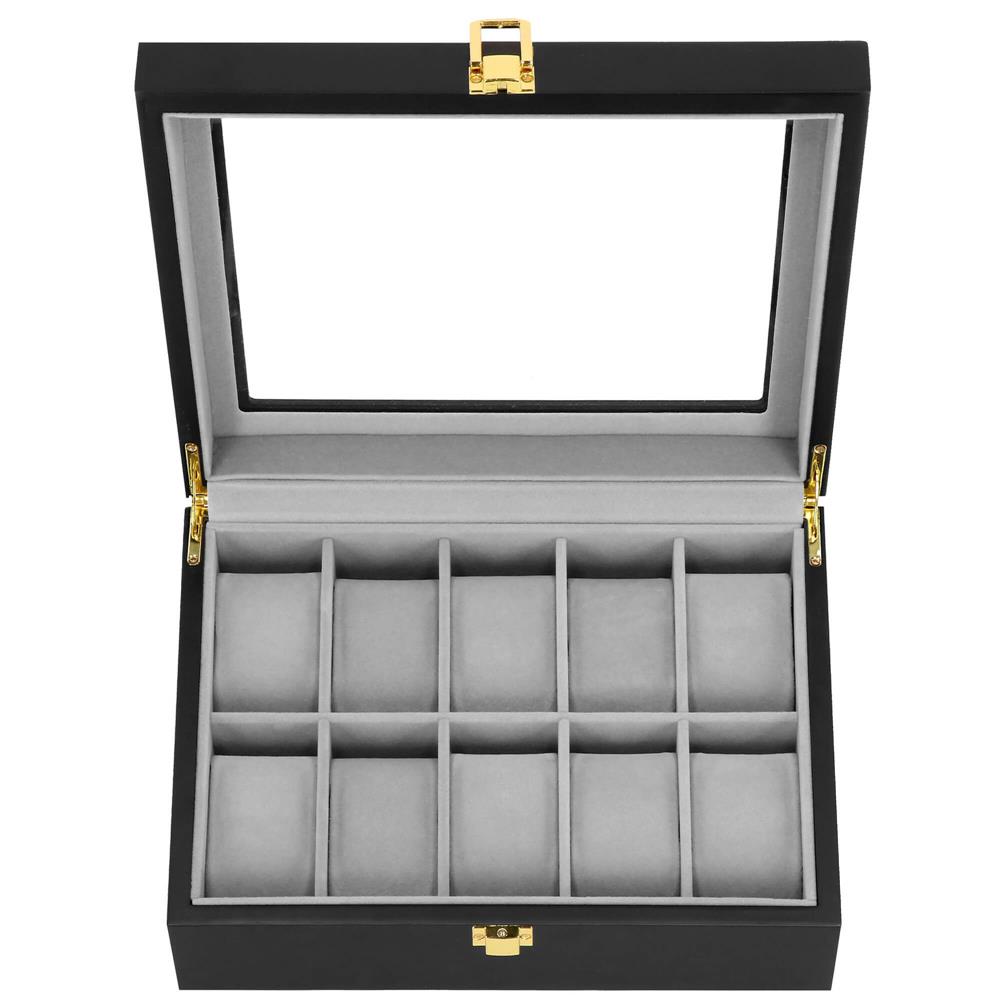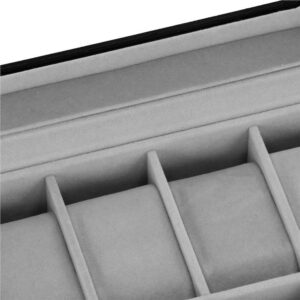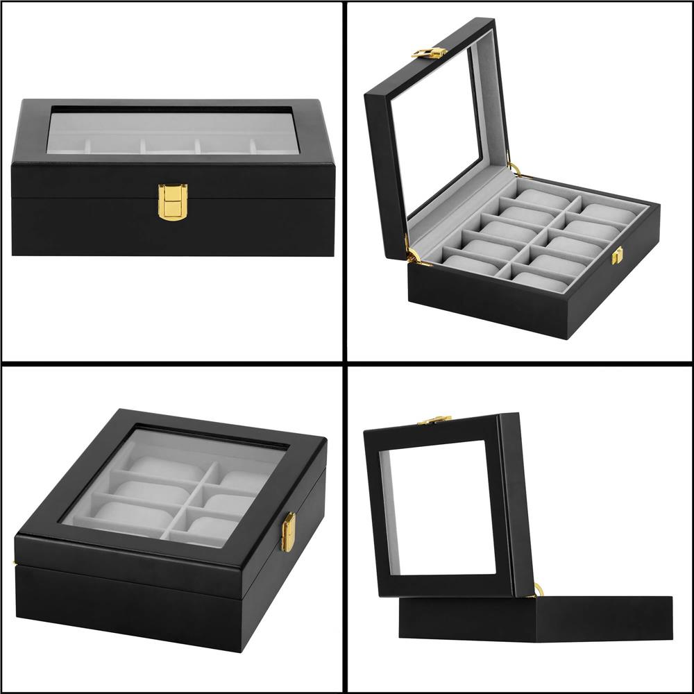 Carcasa cutiei pentru ceasuri este realizata cu atentie la cele mai mici detalii. Se prezinta foarte eficient, elegant si pe langa functia sa cunoscuta, va fi fara indoiala un decor atractiv intr-o forma clasica, care va atrage privirea si va decora imprejurimile. Organizator sub forma unei cutii solide, in interior are o captuseala din material velur extrem de moale si delicat la atingere. In interiorul compartimentelor se gasesc perne, modelate pentru a gazdui bratari si curele. Fiecare ceas isi va gasi locul si datorita interiorului impartit in compartimente, nu se va freca de celelalte si nu se va zgaria. Puteti plasa cele mai valoroase accesorii in ele.