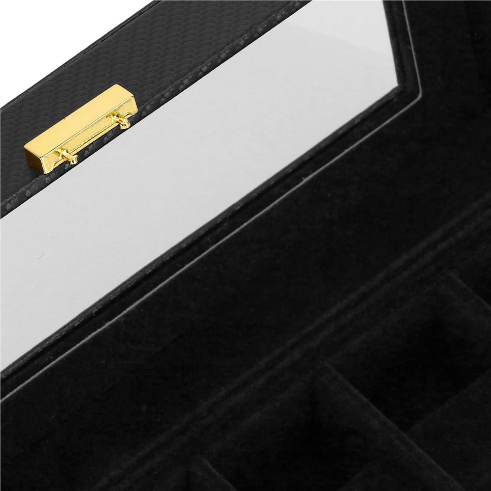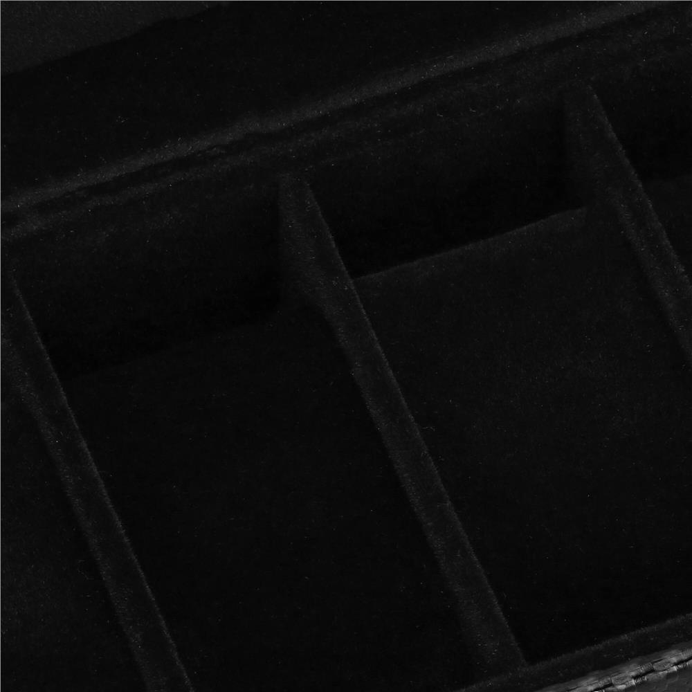 Carcasa cutiei pentru ceasuri este realizata cu atentie la cele mai mici detalii. Se prezinta foarte eficient, elegant si pe langa functia sa cunoscuta, va fi fara indoiala un decor atractiv intr-o forma clasica, care va atrage privirea si va decora imprejurimile. Organizator sub forma unei cutii solide, in interior are o captuseala din material velur extrem de moale si delicat la atingere. In interiorul compartimentelor se gasesc perne, modelate pentru a gazdui bratari si curele. Fiecare ceas isi va gasi locul si datorita interiorului impartit in compartimente, nu se va freca de celelalte si nu se va zgaria. Puteti plasa cele mai valoroase accesorii in ele.