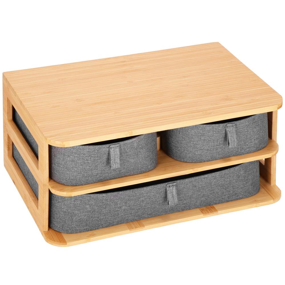 Bambusz rendszerezőődoboz, 3 kivehető fiókkal, 16x36x23cm, barna