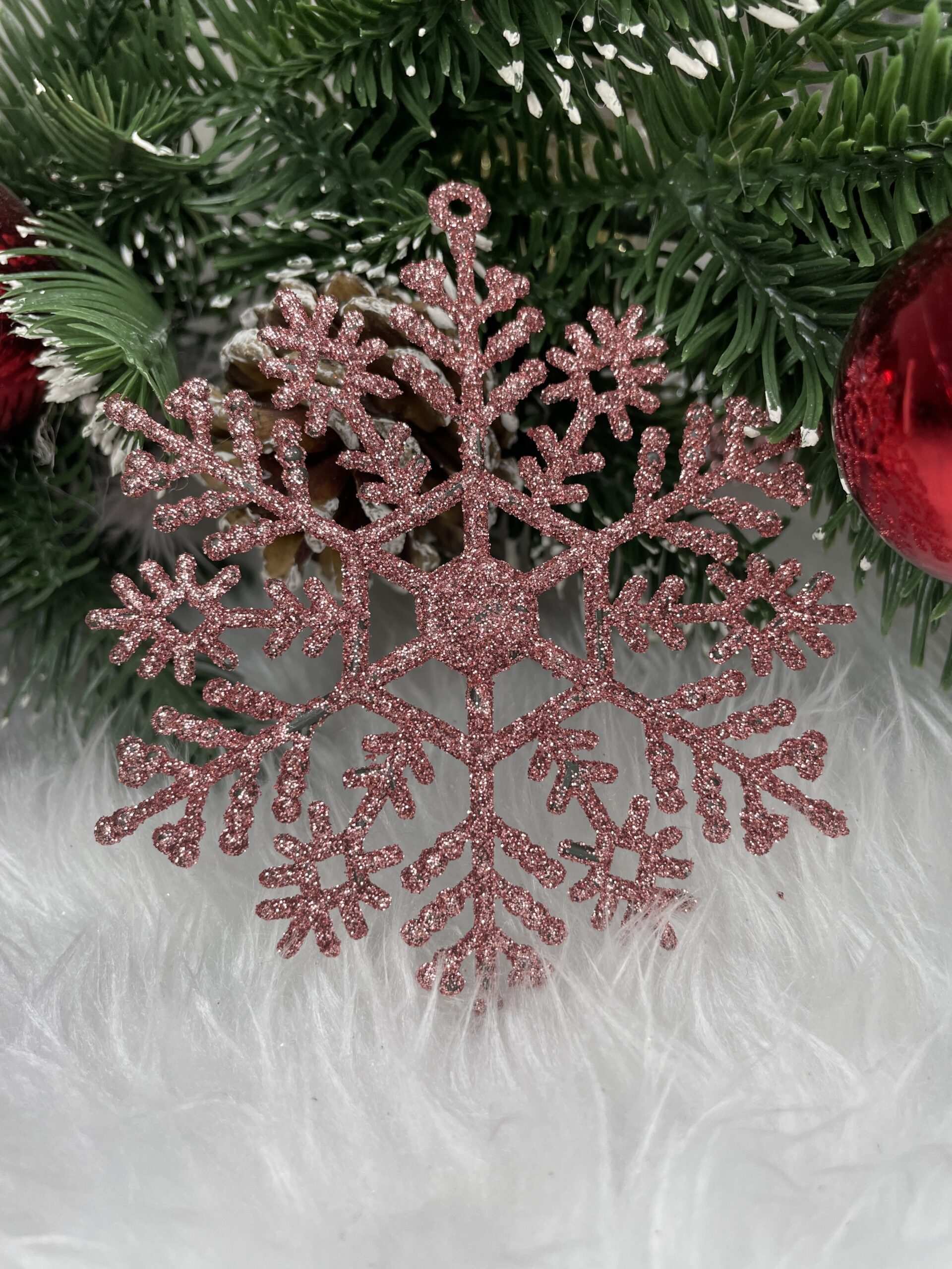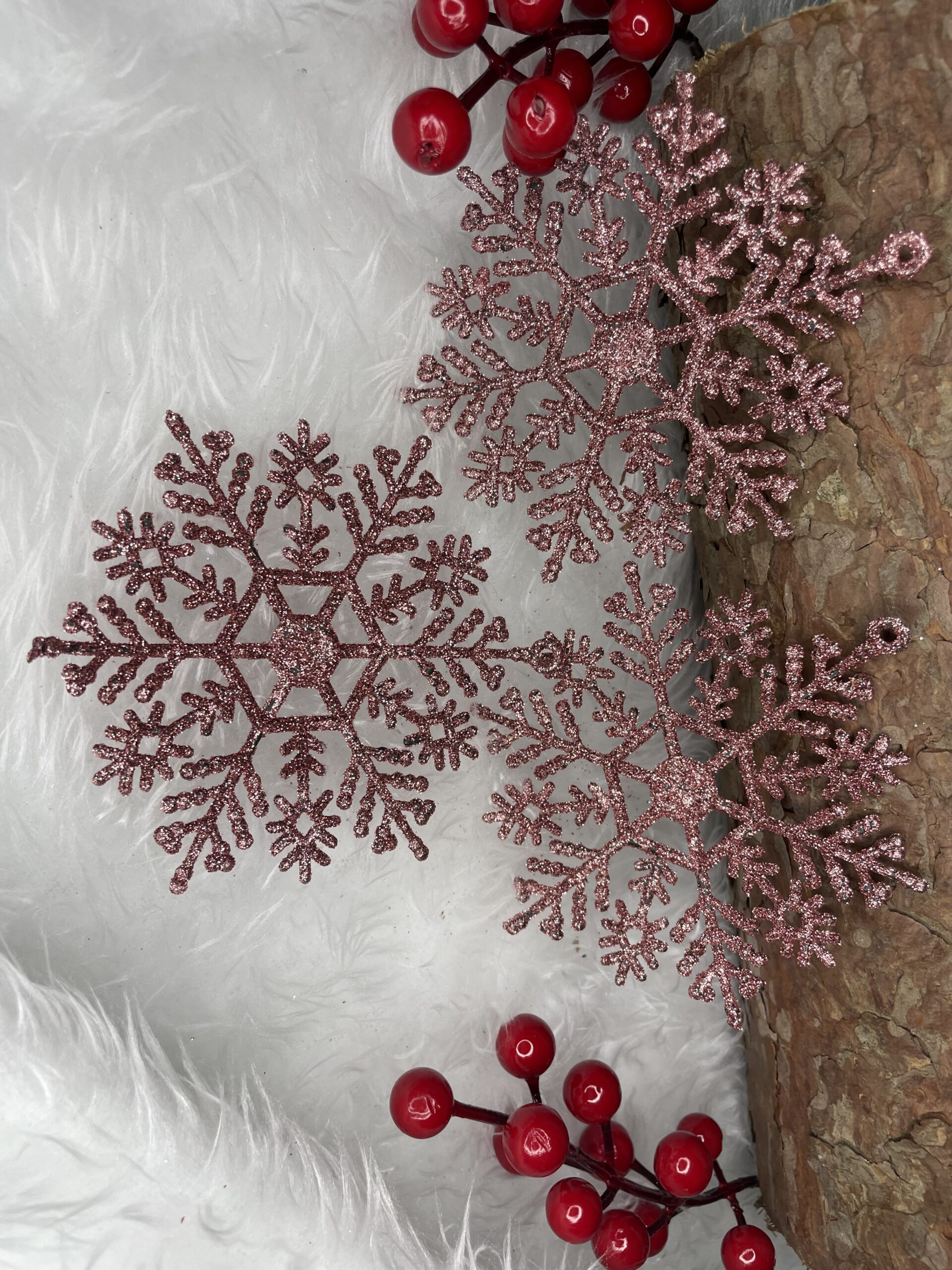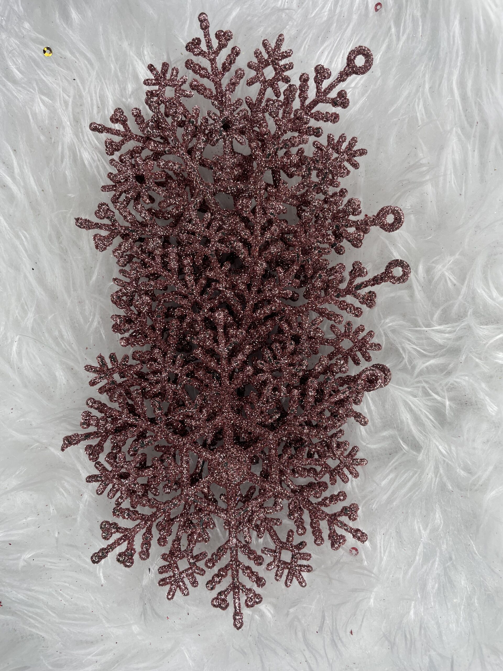 Pandantivele frumoase in forma de fulgi de zapada va vor decora frumos bradul de Craciun. Setul este format din 12 fulgi de zapada cu decupaje frumoase. Pandantivele sunt insotite de o sfoara pentru a le agata pe crengile bradului de Craciun.