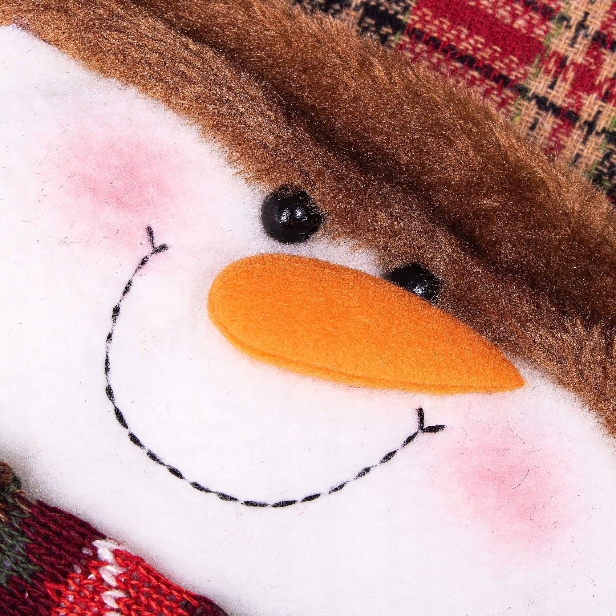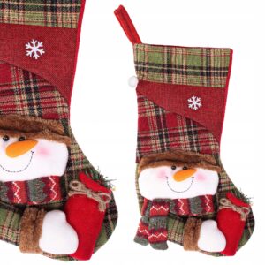 Karácsonyi dekoráció, ajándék zokni hóemberrel, 42cm, piros