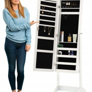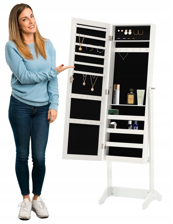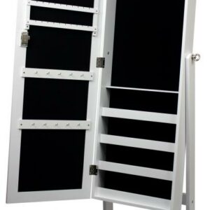 In interiorul dulapului sunt multe rafturi, carlige si compartimente care iti permit sa organizezi bijuterii, ceasuri si parfumuri. Puteti depozita toate accesoriile preferate intr-un singur loc.