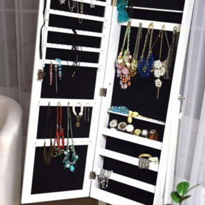 Datorita usii cu incuietoare, care are o oglinda mare in partea din fata, bijuteriile dvs. vor fi protejate de praf.