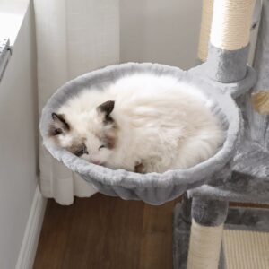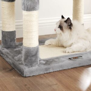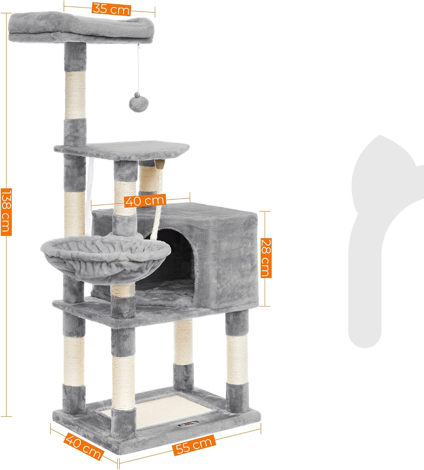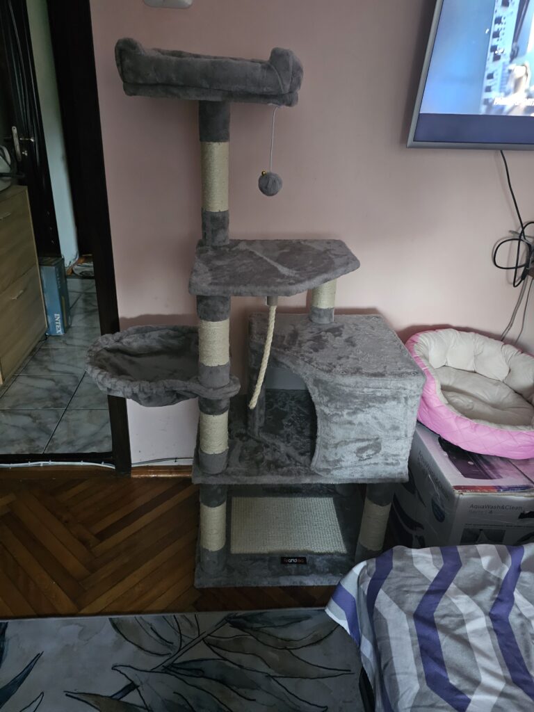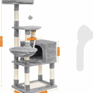 Materiale de calitate, bucurie durabila: Fabricat cu placi aglomerate de calitate, asigurat de un kit anti-rasturnare, acoperit cu plus durabil si prevazut cu sisal rezistent la uzura, acest arbore pentru pisici va va aduce cu siguranta bucurie de durata.