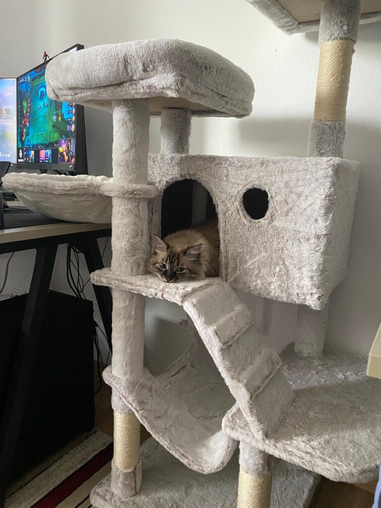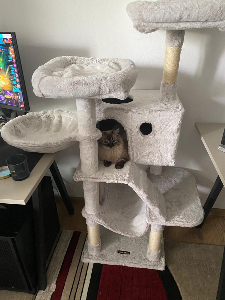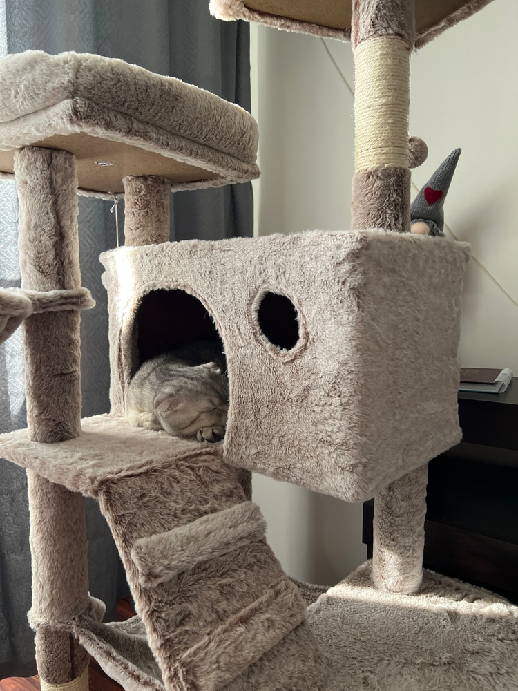 Este stabil, înălțimea perfecta și super pufos. Pisicilor le place mult