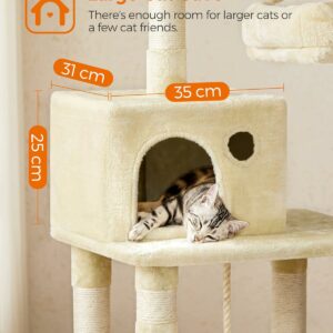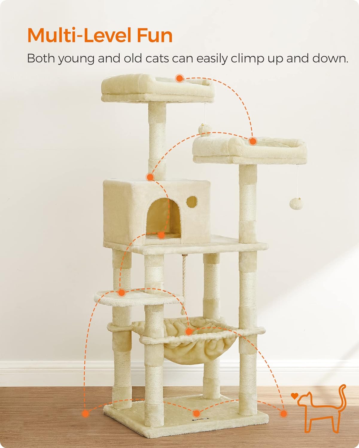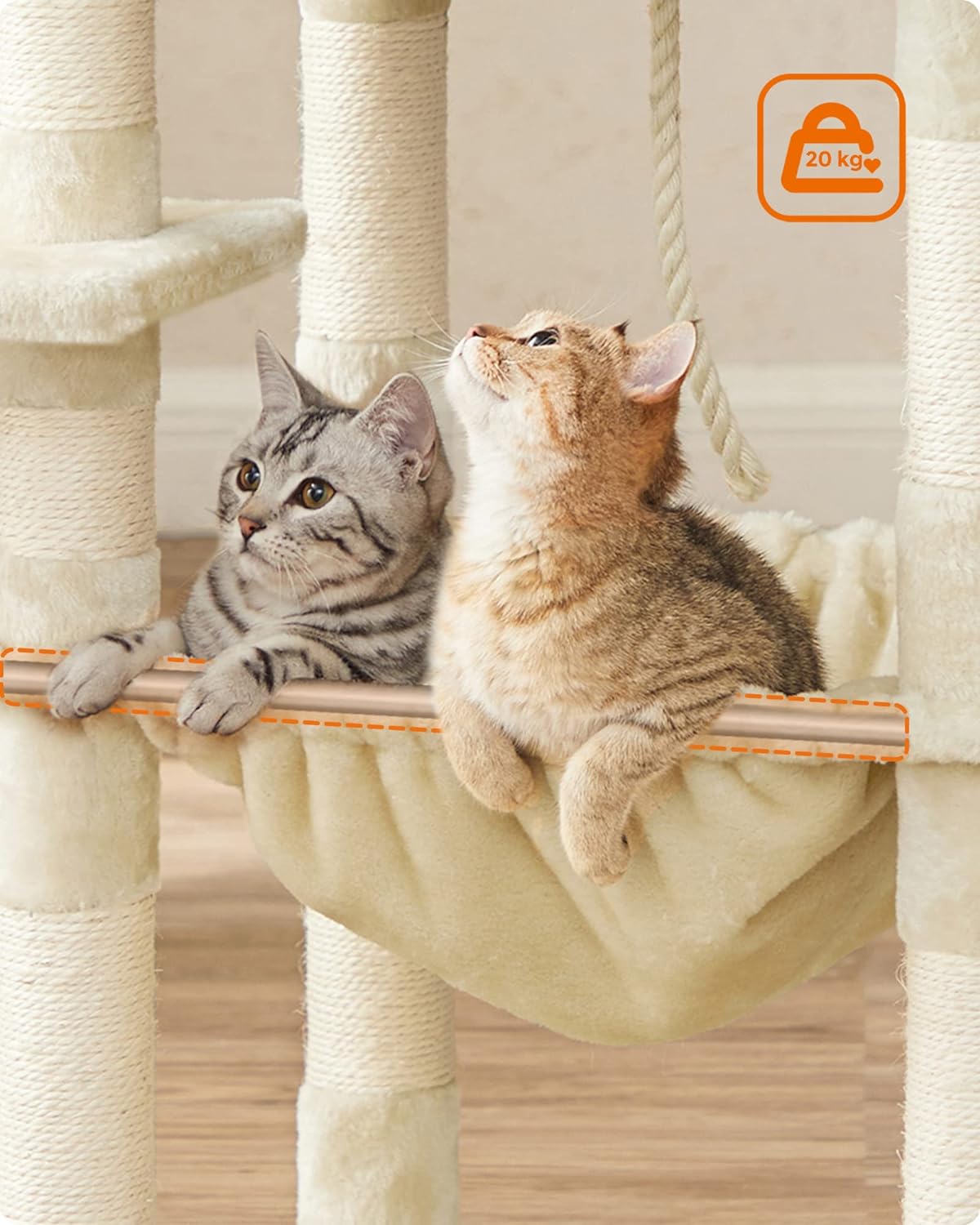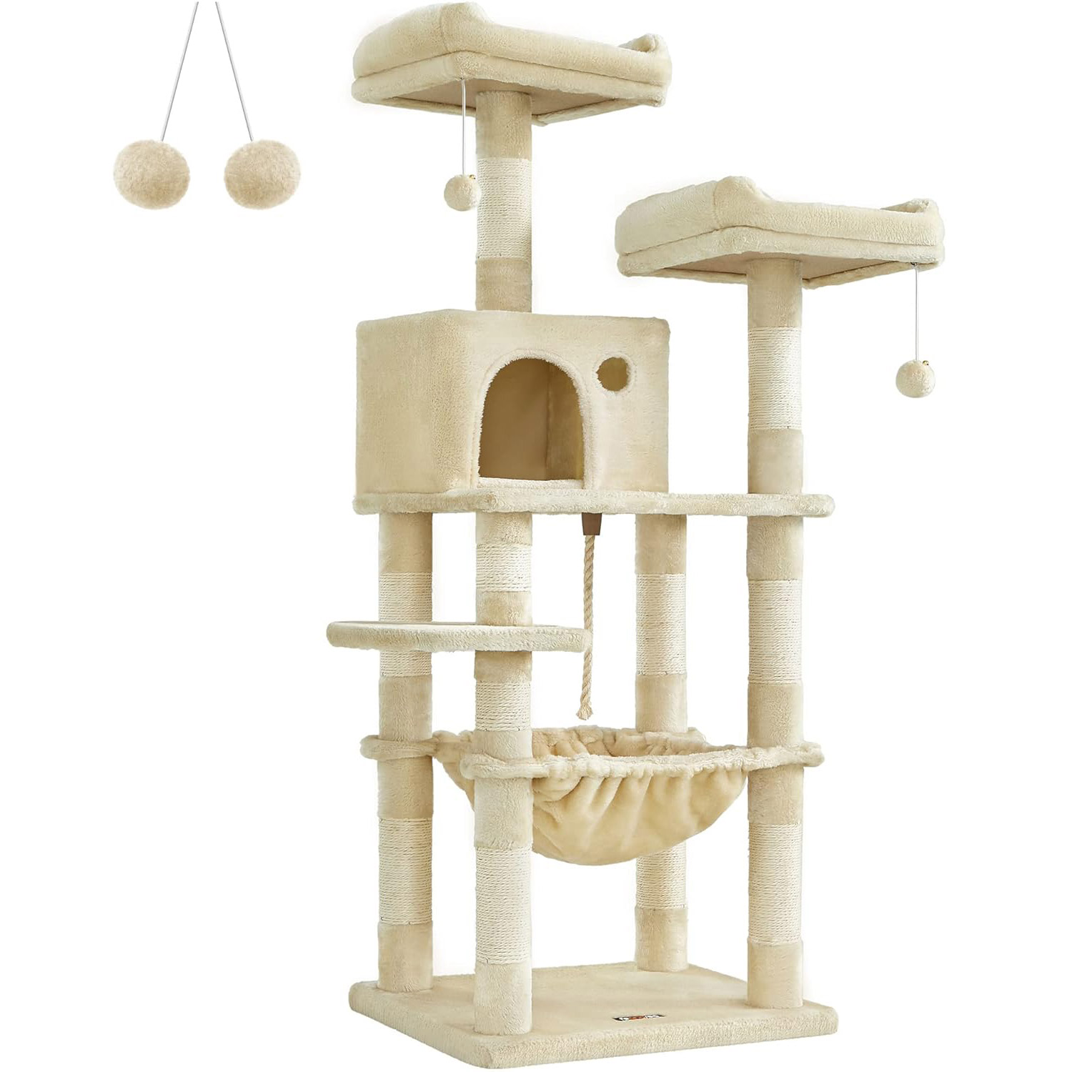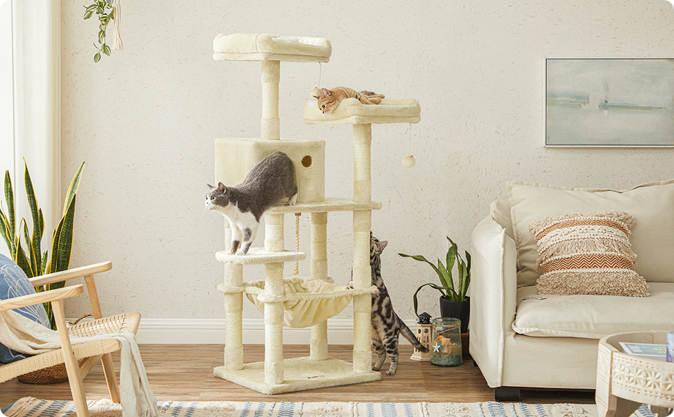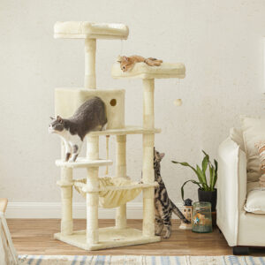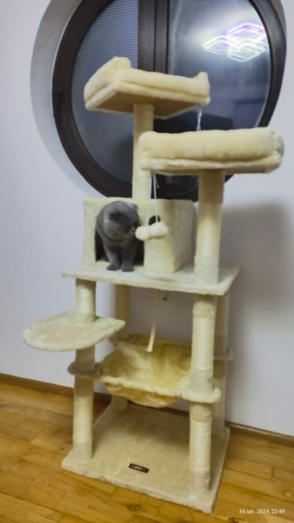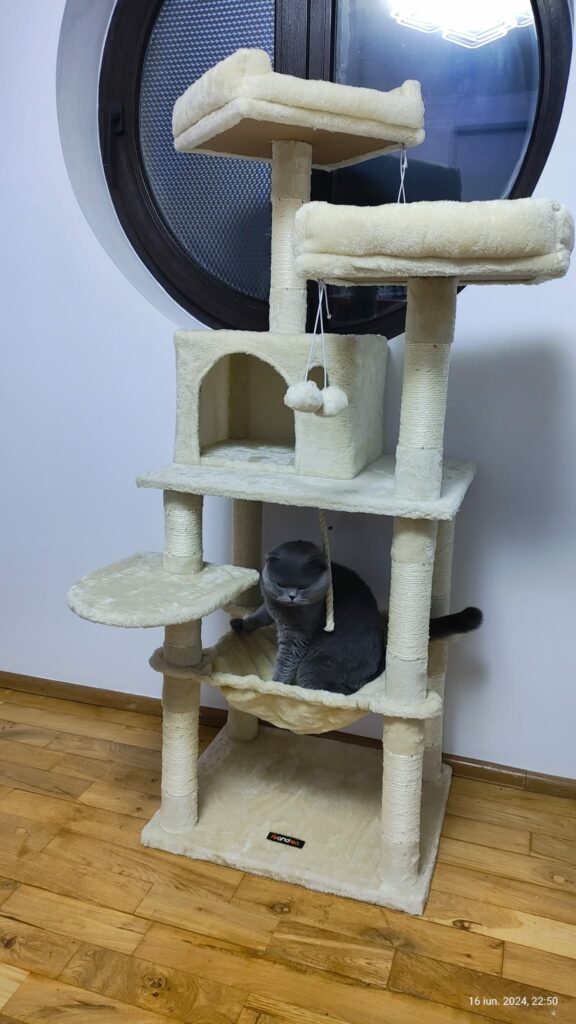 Materiale de calitate: plus gros, sisal rezistent la zgarieturi, scanduri solide din lemn prelucrat – materialele acestui turn pentru pisici vor impresiona chiar si pe cea mai pretentioasa felina.