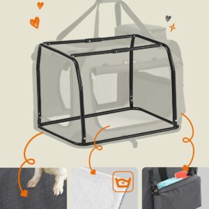 Sigura, confortabila, practica: Geanta portabila pentru caini este realizata din cadru de otel si tesatura Oxford durabila si are in interior un covor de plus usor de intretinut – un refugiu stabil si confortabil pentru cainele tau. Uzsonnák, játékok stb. elférnek a 2 oldalzsebben.