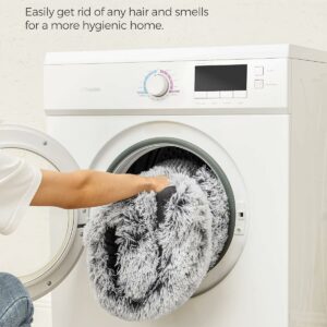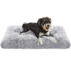 FEANDREA Pat pufos pentru caini sau pisici, captuseala moale cu fir lung, lavabil la masina, 80x50cm, gri deschis
