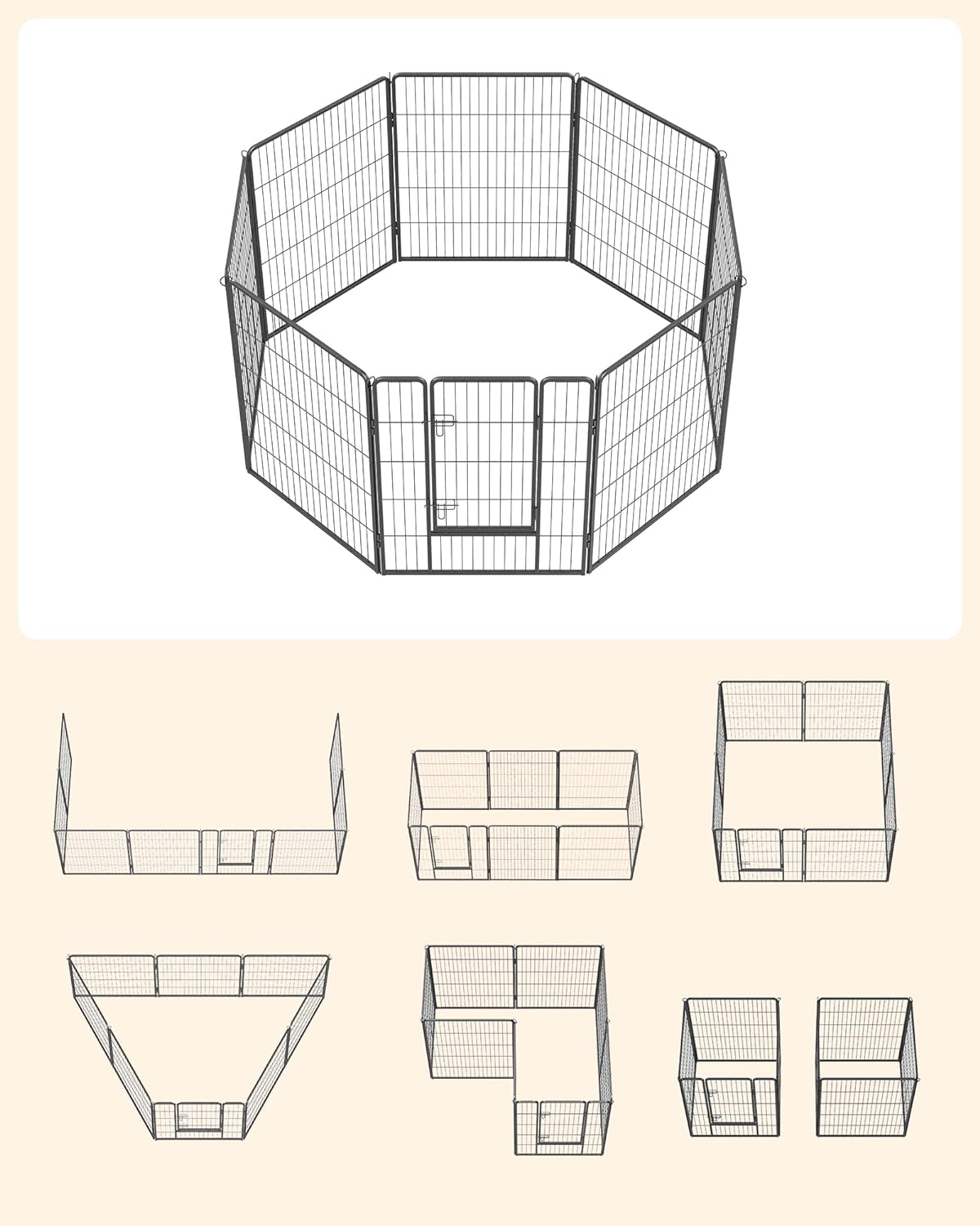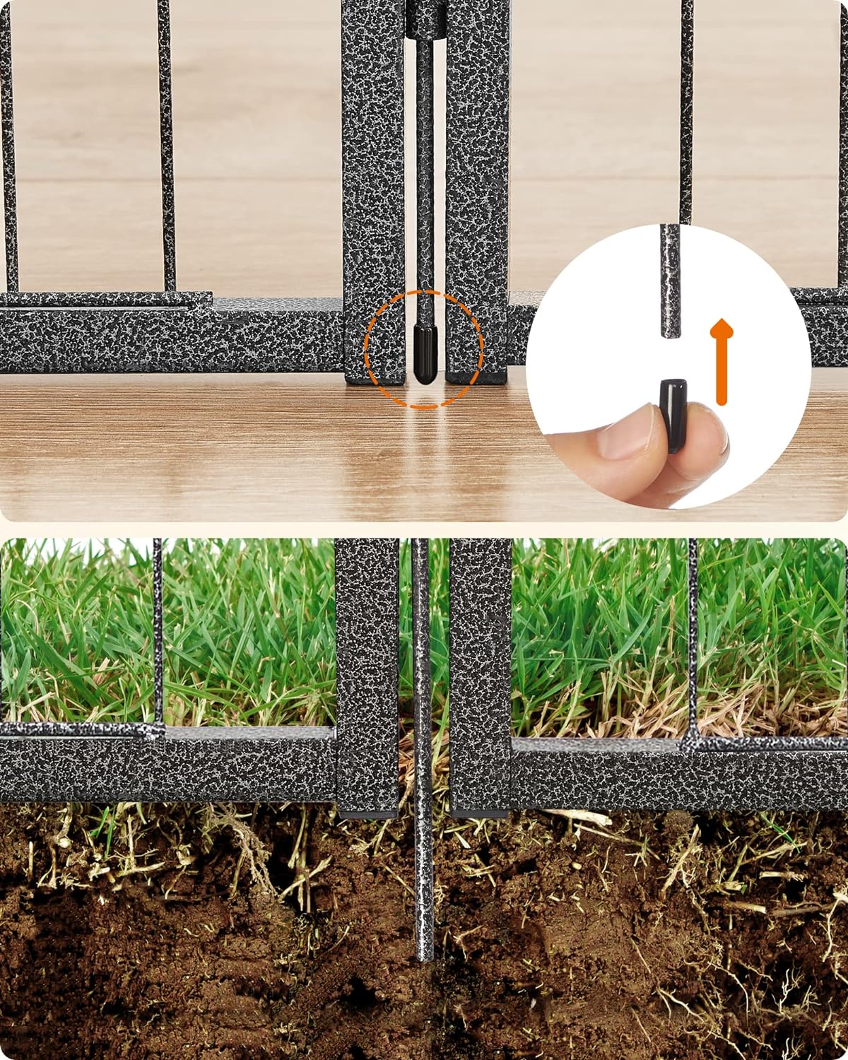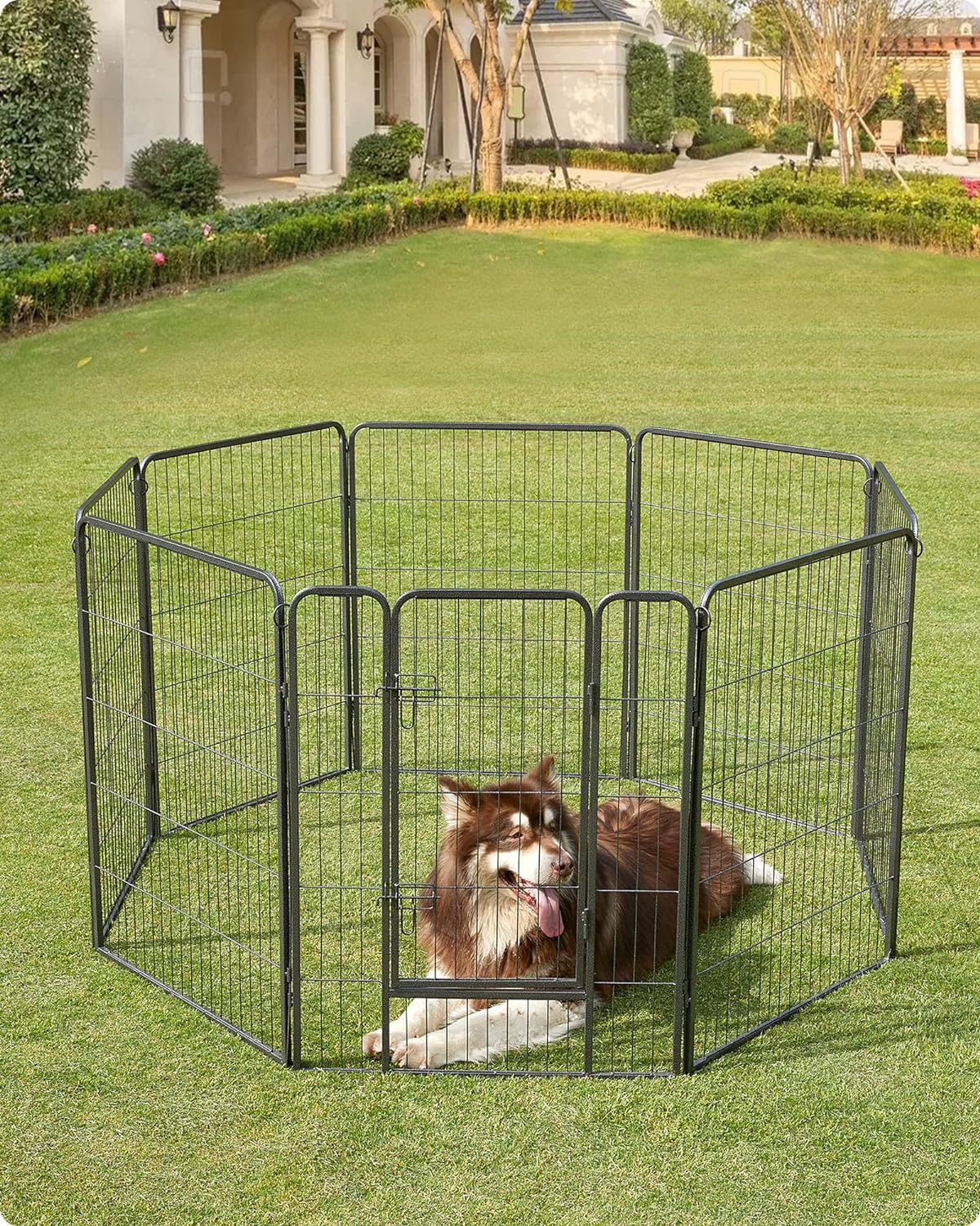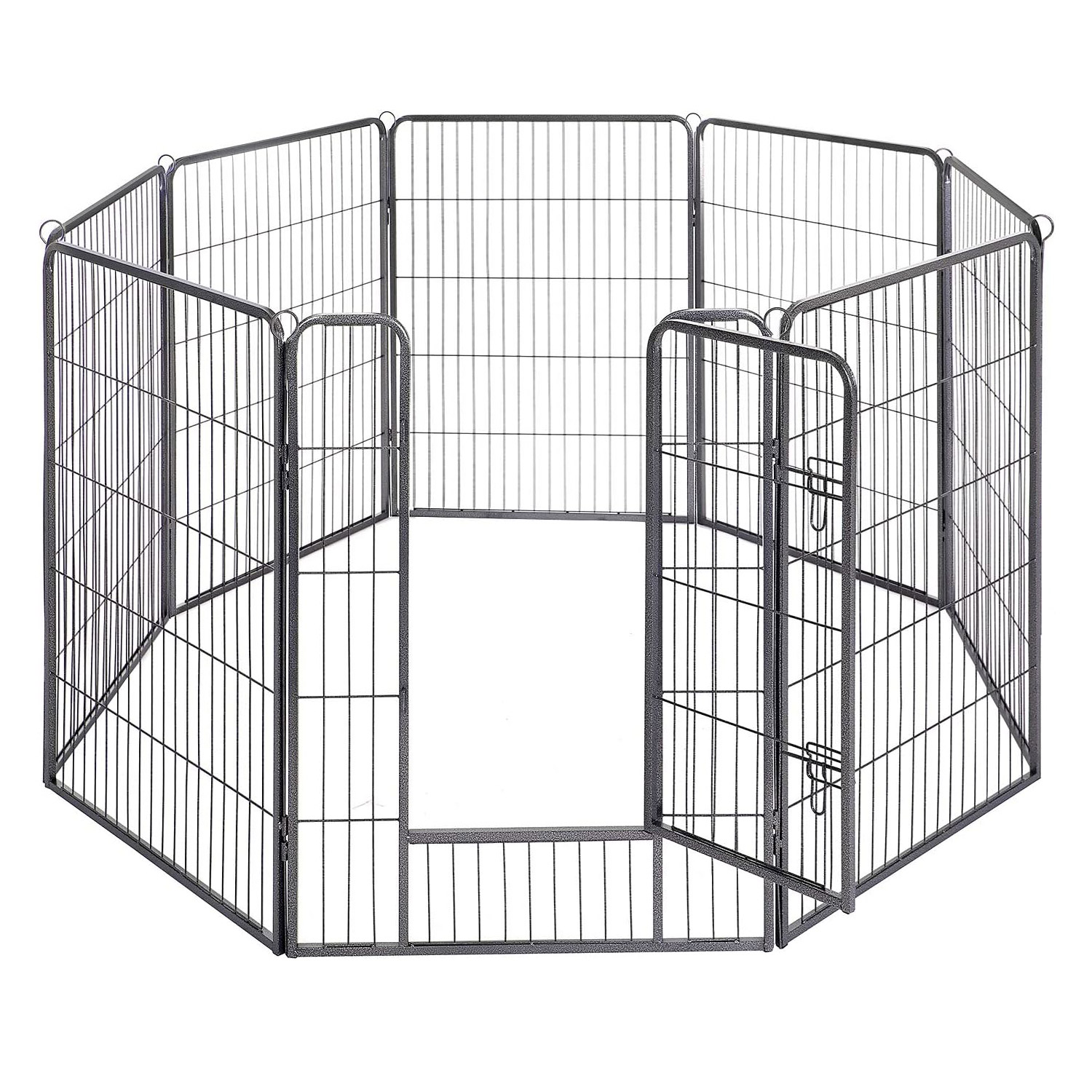 A tömör fémcsövekből készült és padlócsúszkákkal felszerelt kutyajáróka lenyűgözi jó stabilitását. Az összekötő rudak a karámok talajhoz rögzítésére is szolgálnak (ha a kertben használják),