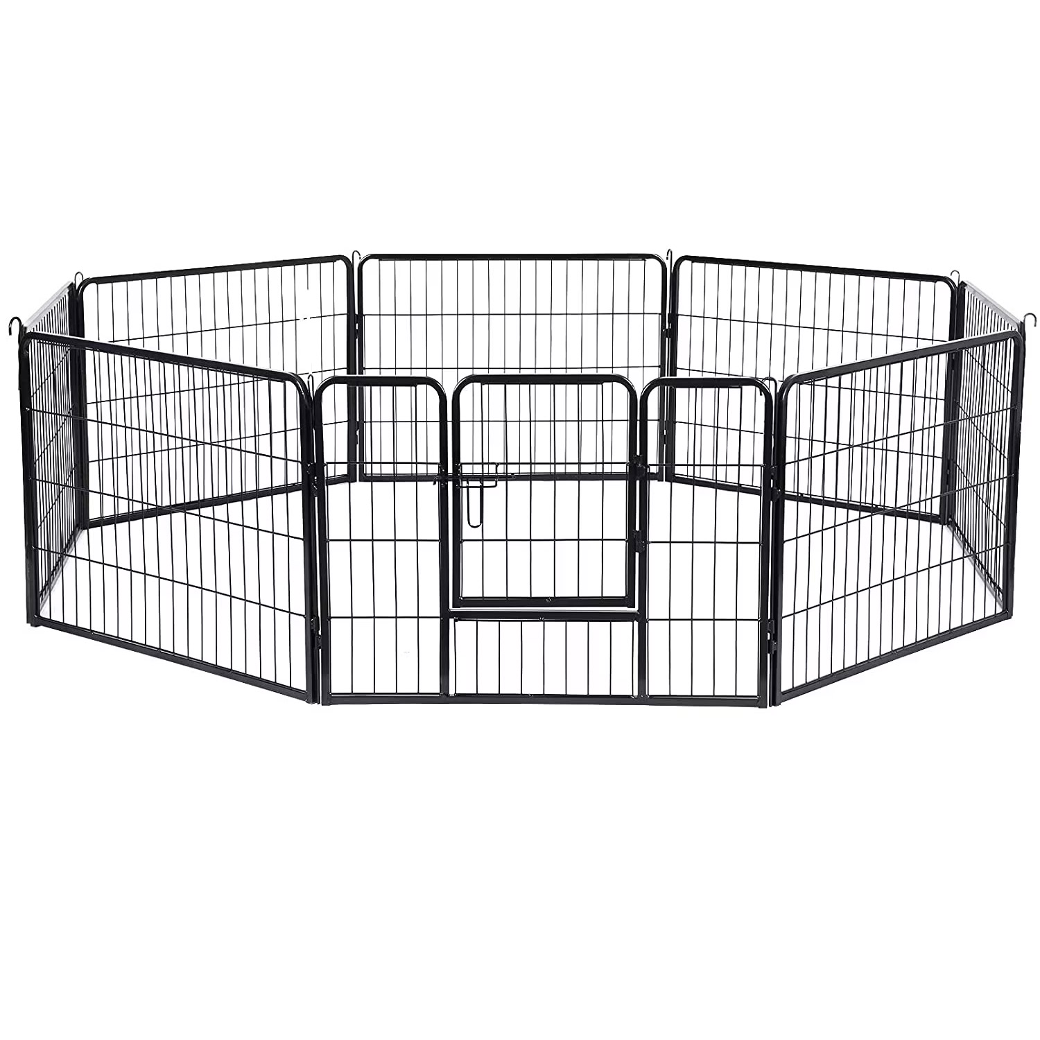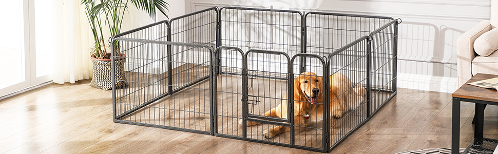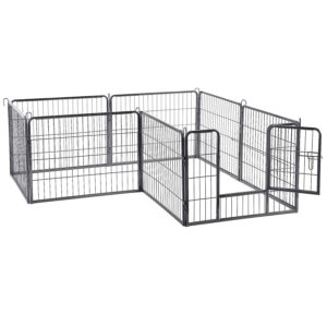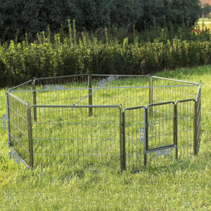 A tömör fémcsövekből készült és padlócsúszkákkal felszerelt kutyajáróka lenyűgözi jó stabilitását. Az összekötő rudak a karámok talajhoz rögzítésére is szolgálnak (ha a kertben használják),