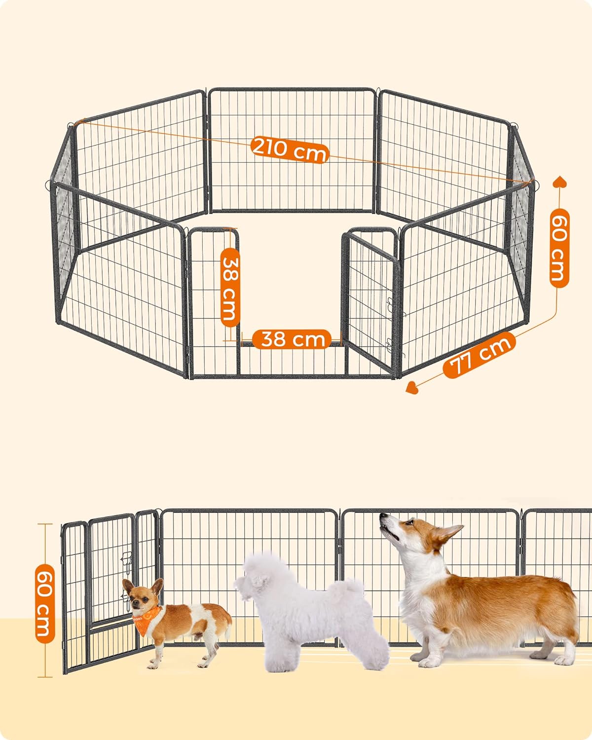 Nem kell mást tennie, mint összekötő rudak segítségével összekötni a toll elemeit – mindössze néhány perc alatt felszerelhető. Ha nem használja, összehajthatja és tárolhatja, hogy helyet takarítson meg. Colturi si margini rotunjite si o usa de 38 x 44 cm cu 2 zavoare in forma de L – astfel incat cateii dvs. sa nu se raneasca sau sa deschida poarta din greseala.