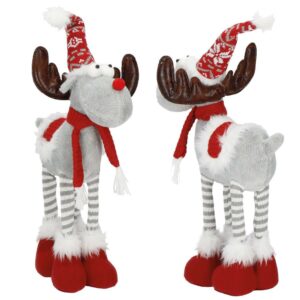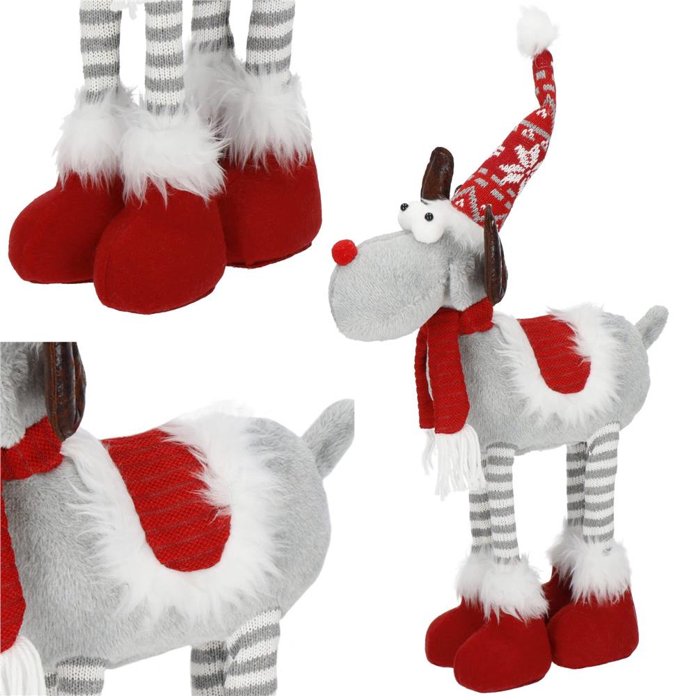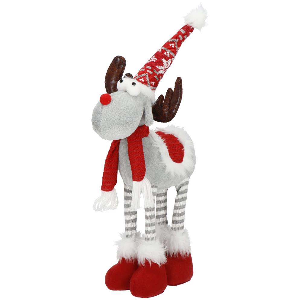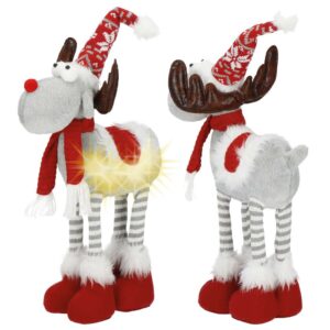 Figurina Craciun, Ren, picioare telescopice, iluminare LED, 61cm