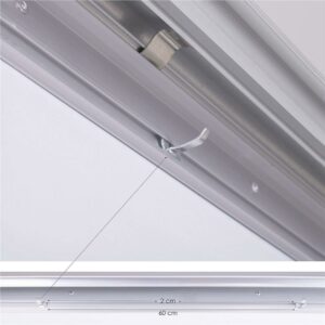 A lemez váza alumínium profilból készült, a sarkain műanyag védőburkolatok vannak a maximális biztonság érdekében. A felső fogantyúk, amelyekre a flipchart papírt rögzítik, legfeljebb 60 cm távolságra állíthatók, így a legtöbb elérhető papír alkalmas az ilyen típusú táblákhoz.