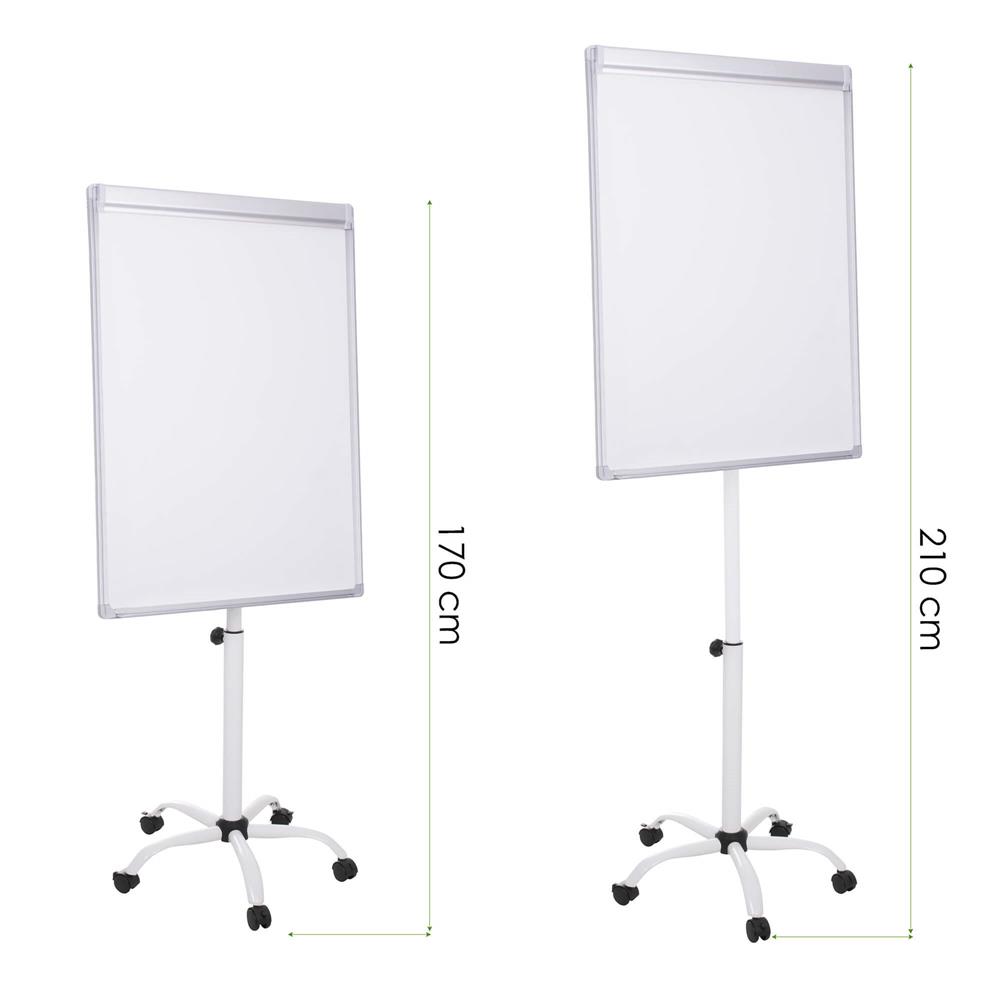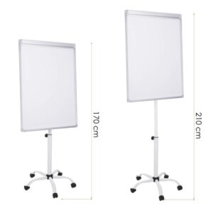 A flipchart magassága 170 cm és 210 cm között állítható. Ennek köszönhetően egyedileg állítható a felhasználó magasságához.