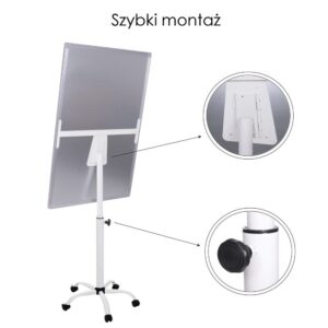 Mágneses flipchart lábbal, görgős mobil, állítható magasságú, 70x100cm, fehér