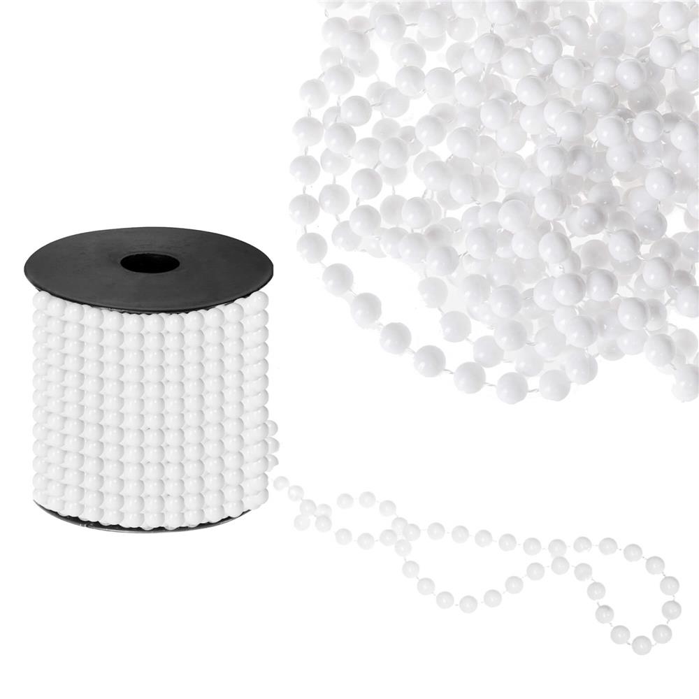 Gyöngyfüzér karácsonyfához, 10 méter, fehér