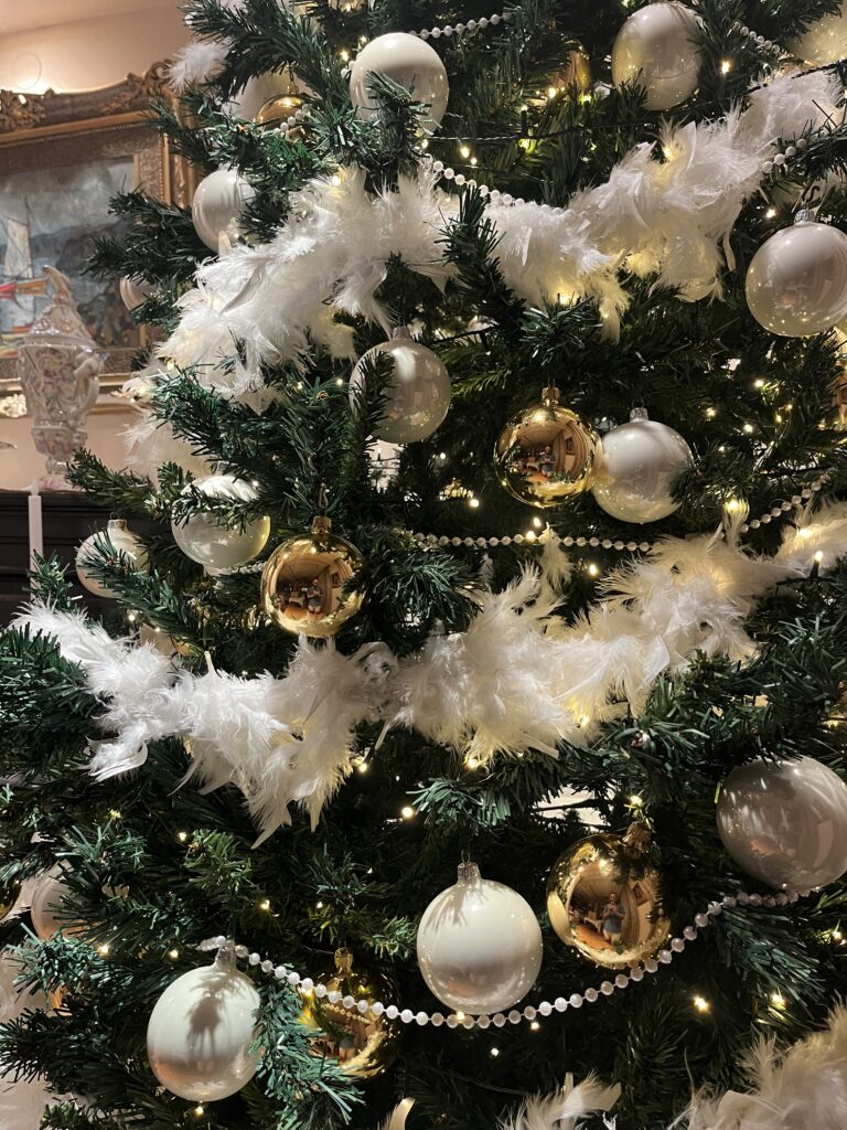 Margelele albe perlat sunt elementul cel mai încântător din brad.
