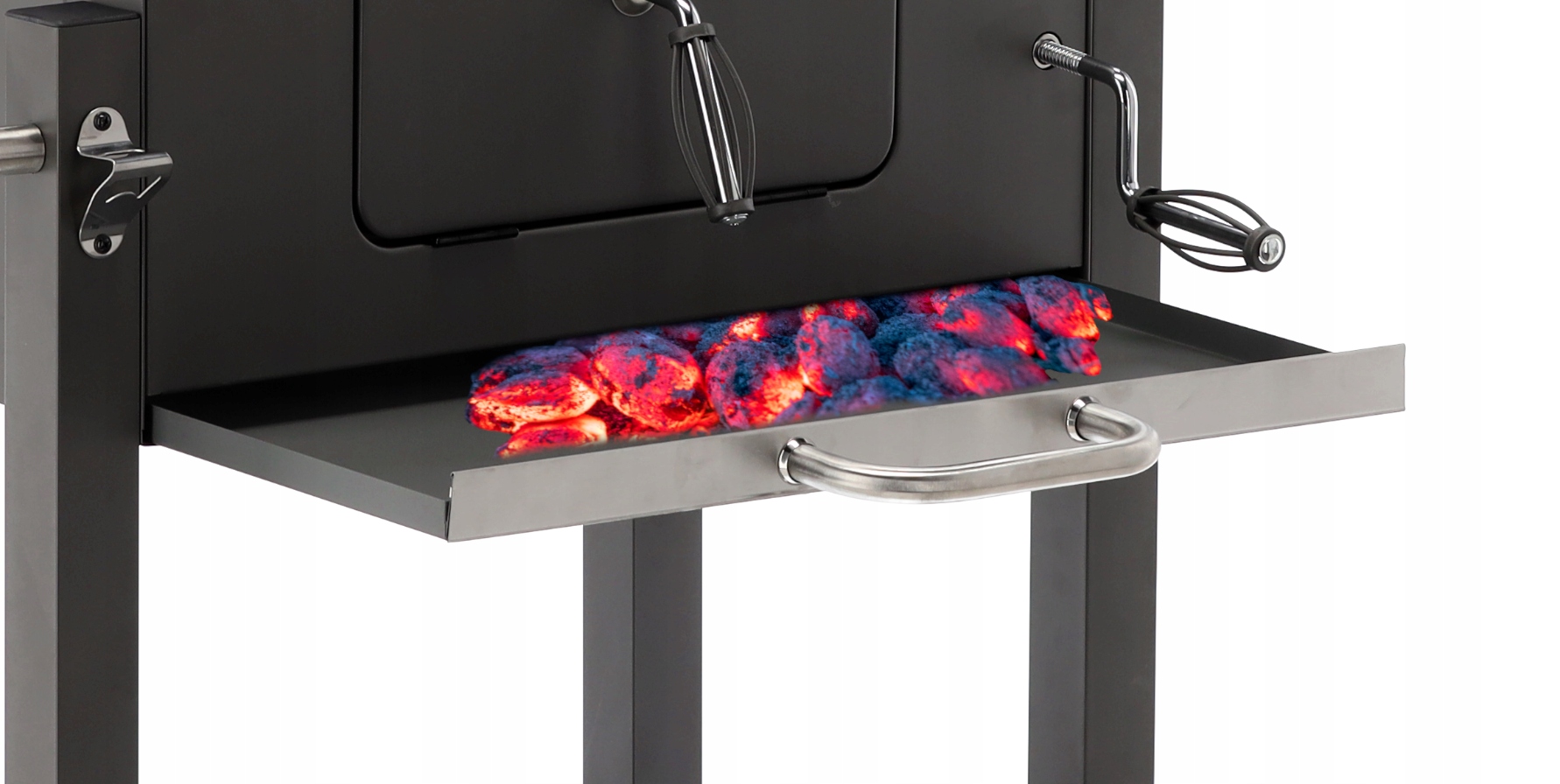 A grillsütő praktikus hamutálcával van felszerelve, kihúzható fiók formájában. Lehetővé teszi a hamu biztonságos eltávolítását a rácsok eltávolítása nélkül. Ez csökkenti az égési sérülések kockázatát.