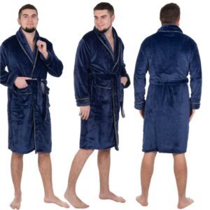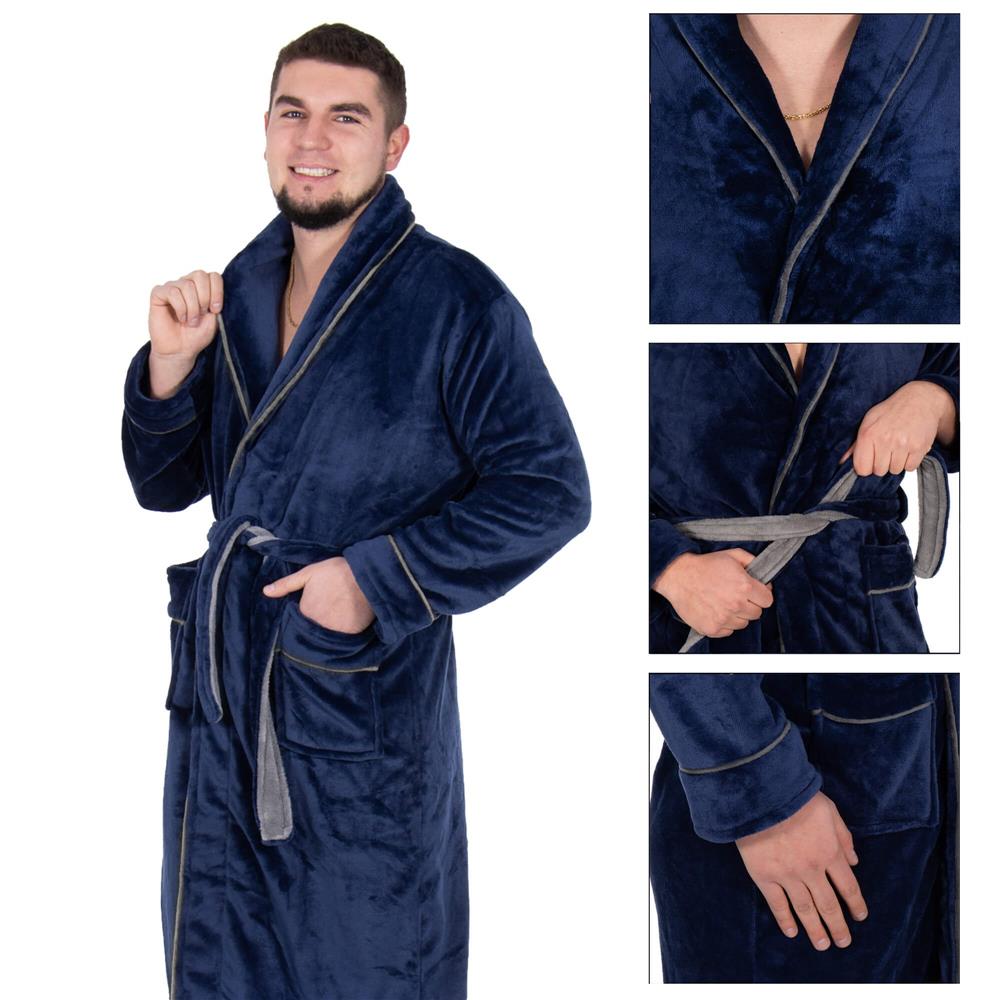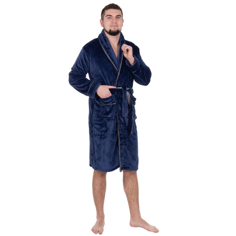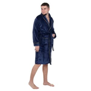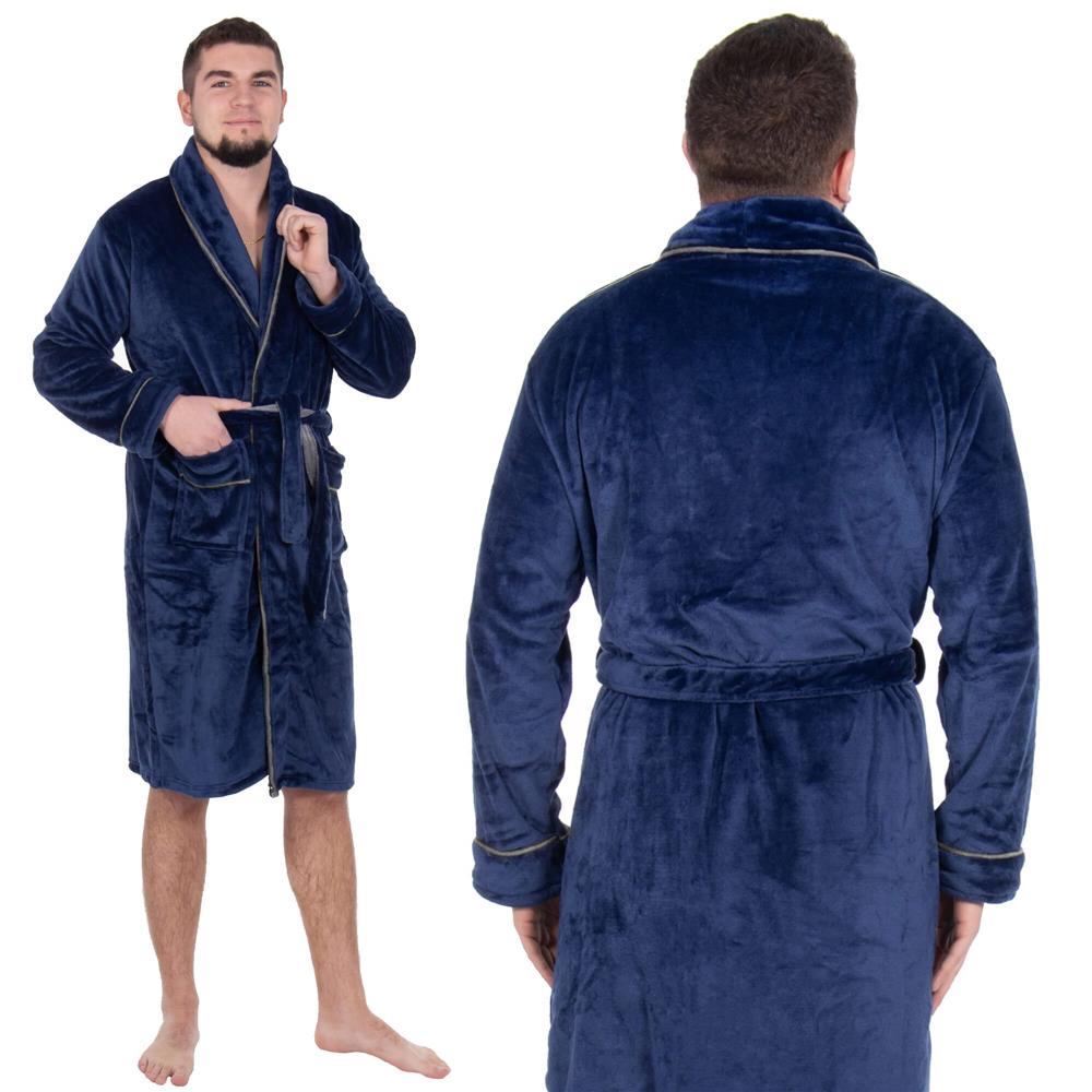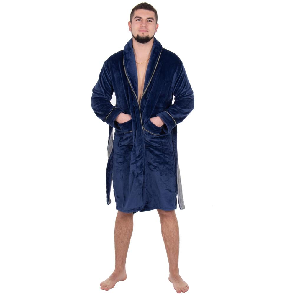 Térdig érő férfi fürdőköpeny, M/L méret, sötétkék termékről 1 értékelés