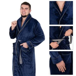 Térdig érő férfi fürdőköpeny, M/L méret, sötétkék
