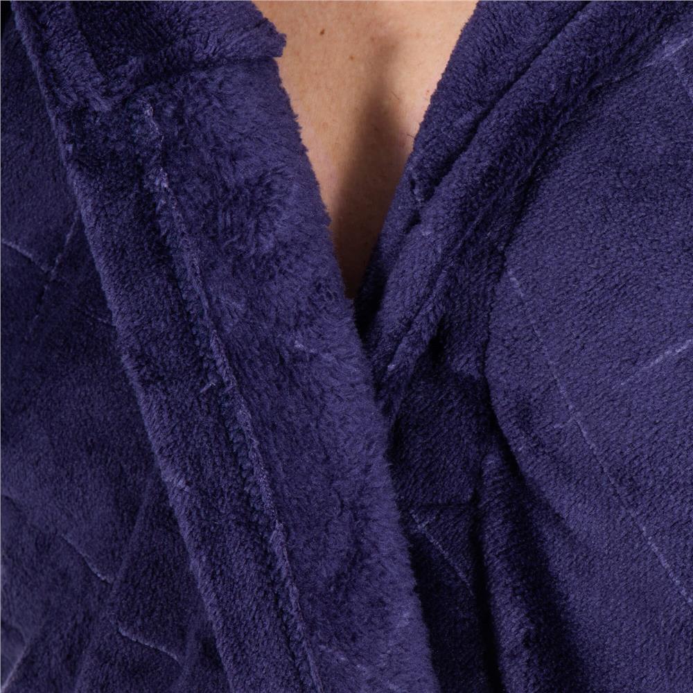 Fürdőköpenyünk nem csak kellemes megjelenésével fogja elbűvölni, de felbecsülhetetlen értékű funkcionalitást is kínál. Az elegáns megjelenést kölcsönző kapucninak és praktikus elülső zsebeknek köszönhetően mindig lesz hely a telefonnak, a távirányítónak vagy az apró tárgyaknak. Ezenkívül praktikus övvel van ellátva, amely tökéletes illeszkedést tesz lehetővé.