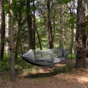 Dupla függőágy ejtőernyős anyagból 140x260cm, szúnyoghálóval és szállítótáskával, szürke