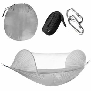 „Dupla függőágy ejtőernyős anyagból 140x260cm, szúnyoghálóval és szállítótáskával, szürke” értékelése elsőként