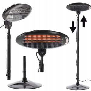Állítható támaszték 1,75 m – 2,10 m: A sugárzó fűtőtest egy 1,75 m – 2,10 m távolságban állítható állványra van helyezve, amely lehetővé teszi a magasság és a helyzet beállítását, ami rendkívül praktikus, hogy a hőt oda irányítsa, ahol szüksége van rá.