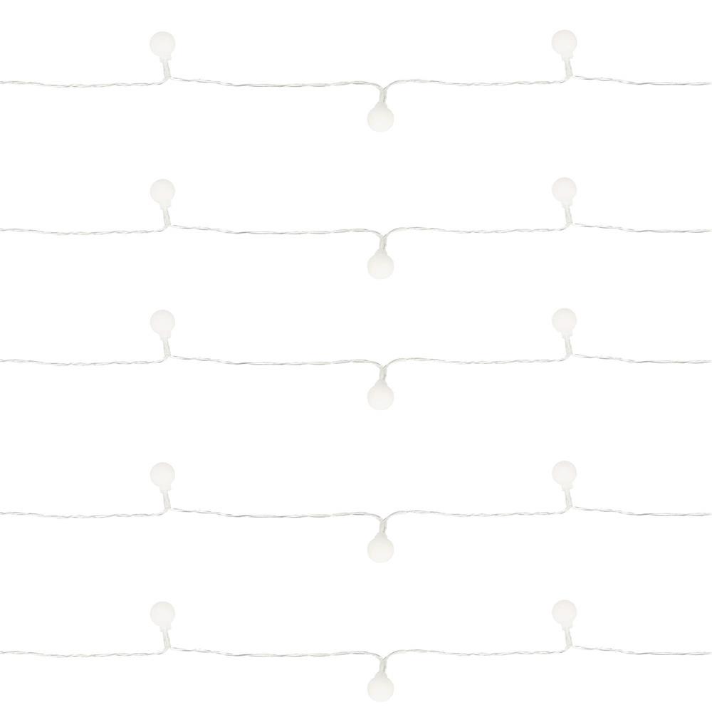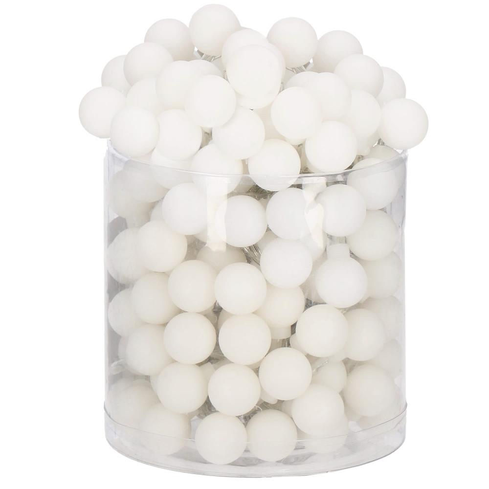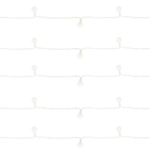 Lantul luminos este format din LED-uri sub forma de bila. Acestea au fost plasate pe fire de cupru durabile, care sunt rezistente la rupere. Totul este alimentat de baterii, astfel incat il puteti atarna oriunde fara sa va faceti griji daca exista o priza de curent in apropiere.