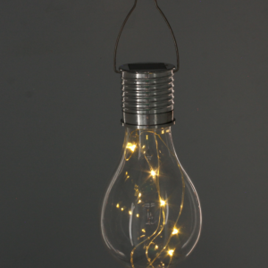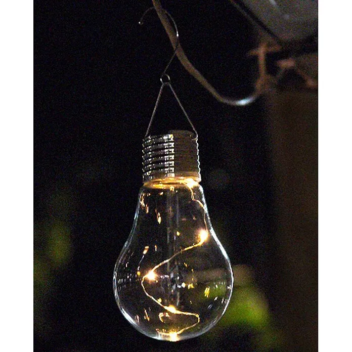 Különleges díszítőelem a felakasztható napelemes izzó. A kiváló minőségű lámpa fényes fehér fénnyel világít a LED-nek köszönhetően. A napelemes rendszernek köszönhetően a napfénynek kitett lámpa önmagát tölti fel! Csak élvezze a csodálatos hatást.