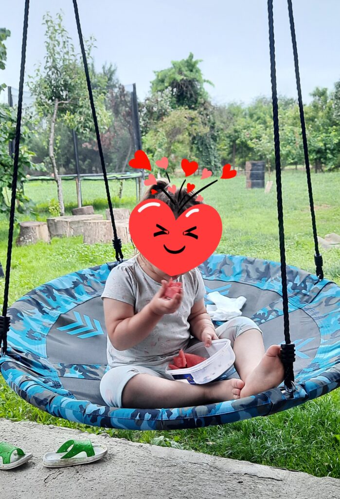 Fetița mea este foarte încântată de acest leagăn. Încăpător și rezistent.