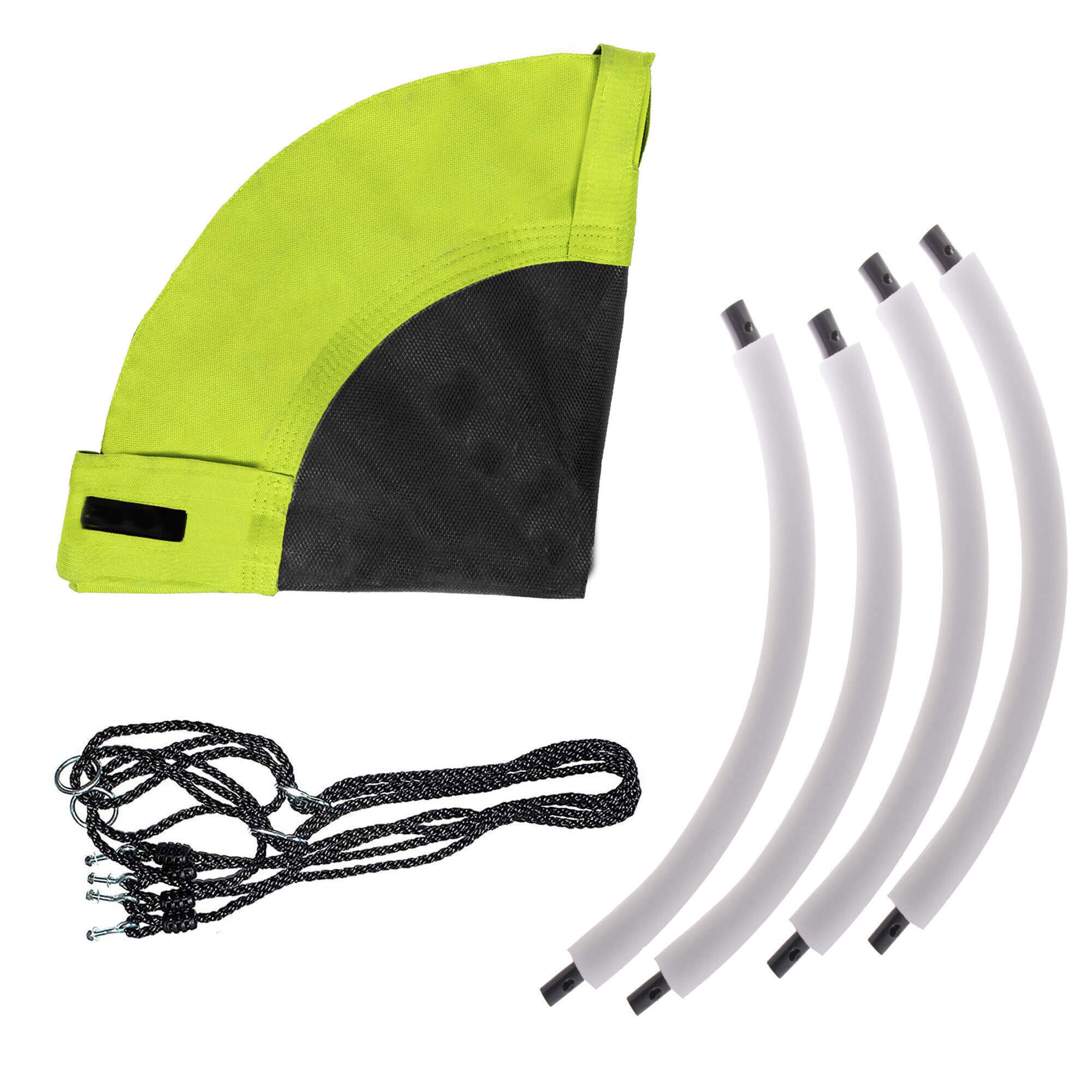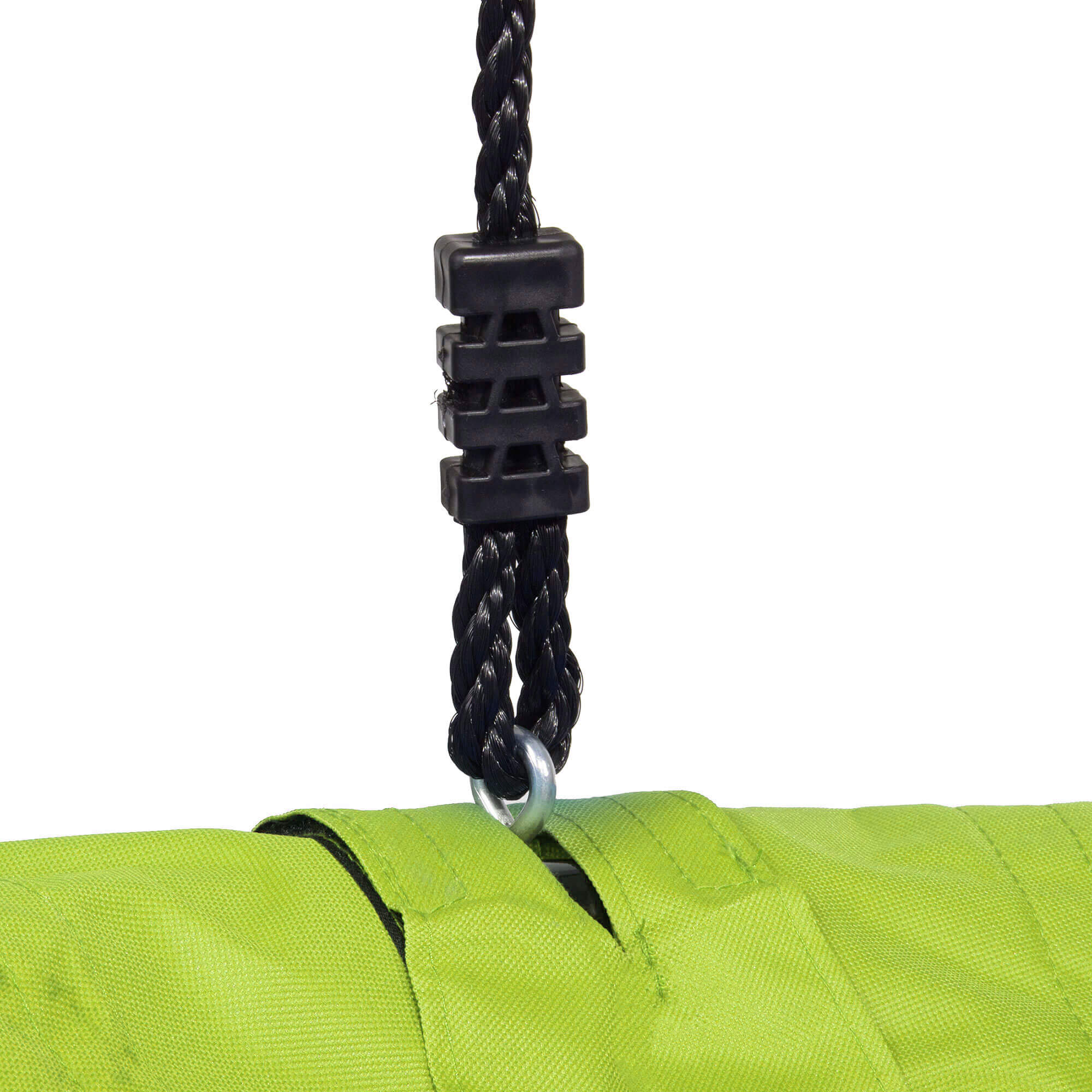 - Leagan tip cuib, din panza rezistenta, dotat cu doua franghii ajustabile si inele sudate, de prindere in 4 locuri, pentru o stabilitate si siguranta sporita.