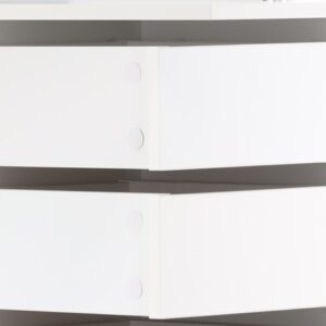 A fésülködőasztal méretei révén tökéletesen illeszkedik a szobák sarkaiba, egyúttal optimalizálva a rendelkezésre álló helyet. Kompakt kialakítása nemcsak helyet takarít meg, hanem modern karaktert is kölcsönöz a belső térnek. Ellenálló MDF lapokból készült, garantálva a stabilitást és a tartósságot. A fehér szín eleganciát kölcsönöz, és sokféle enteriőrhöz alkalmassá teszi a fésülködőasztalt, frissességet kölcsönözve annak. A fésülködőasztal felett központi helyen elhelyezett nagy tükör és 2 oldalsó tükör megkönnyíti a napi sminket és a hajformázást.