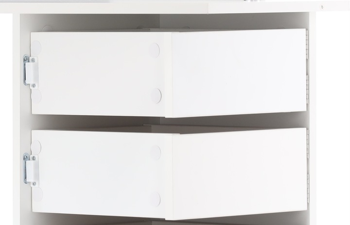 5 fiókkal felszerelt, amely lehetővé teszi a kozmetikumok és a smink kiegészítők rendszerezését. A fiókok zsanérokra vannak felszerelve, így könnyen és gyorsan hozzáférhet a szükséges dolgokhoz. A fiókok mágnessel vannak ellátva, amely megakadályozza a nyitást.