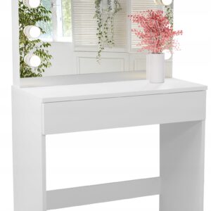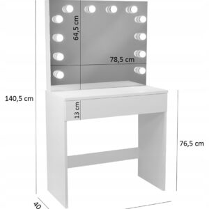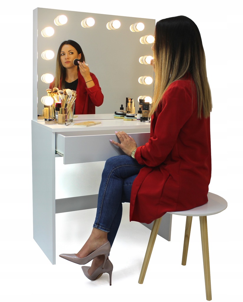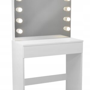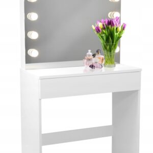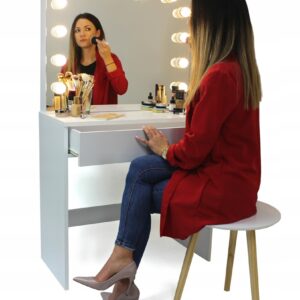 Aceasta masuta de toaleta cu oglinda si iluminare este cu siguranta o idee de cadou excelenta pentru orice femeie. Acesta va gazdui un numar mare de coliere, inele, bratari intr-un sertar incapator. Cele 12 lumini cu leduri adauga farmec si eleganta, iar oglinda exterioara este, dupa cum toata lumea stie, un element indispensabil in orice dormitor.