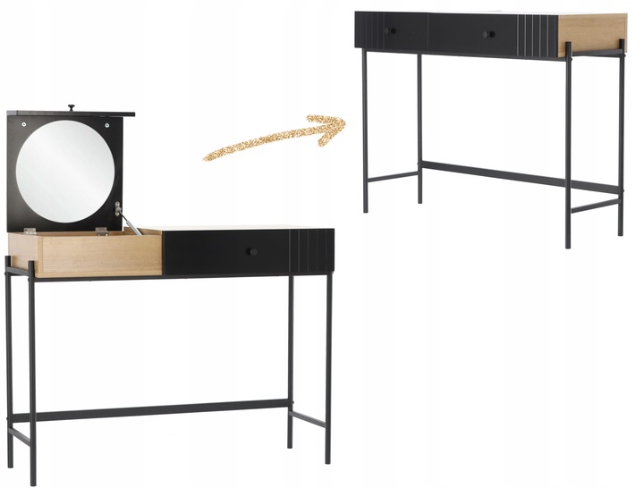 A fésülködőasztal nemcsak praktikus hely az ápoláshoz, hanem elegáns, az Ön igényeihez igazodó konzol is. A fém konstrukciós elemek és az üvegrészletek a fésülködőasztalt egyben masszívvá és könnyűvé teszik.
