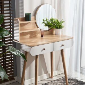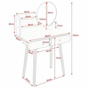 Masa de toaleta si machiaj Ravena, alb fag, cu 2 sertare, oglinda, 80x40x122 cm