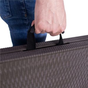 Az összecsukható asztal tökéletes eleme bármilyen rendezvénynek, bankettnek vagy családi kirándulásnak. A bőröndbe csukható lehetőségnek köszönhetően kényelmesen mozgatható vele szó szerint bárhová. Ezen kívül van egy fogantyúja, amely megkönnyíti a szállítást.