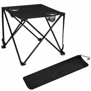 Kemping vagy horgász összecsukható asztal, 2 pohártartóval, 46x46x45 cm, fekete