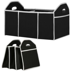 Organizatorul va va permite sa economisiti mult spatiu in masina sau acasa si sa aranjati toate cele mai necesare lucruri intr-un singur loc. Cu ajutorul lui, vei uita sa cauti lucruri pierdute in casa sau masina. Suprafata interioara a fost impartita in trei camere, ceea ce va permite sa aranjati lucrurile in ea dupa cum doriti. Peretii care separa camerele individuale au fost intariti suplimentar pentru a separa mai bine articolele adiacente si pentru a mentine cosul intr-o pozitie compacta. Organizatorul poate fi pliat intr-o pozitie plata cu o singura miscare. Cand este pliat, ocupa foarte putin spatiu, ceea ce il face usor de depozitat. Il poti pune apoi in portbagaj sau il poti pune intr-un sertar acasa, fara a ocupa astfel spatiul util. Organizatorul are manere, datorita carora il puteti transporta convenabil cu tot continutul sau. Va fi util nu numai acasa ci si in masina. Il poti folosi pentru a depozita jucarii, haine, produse cosmetice sau multe alte articole de zi cu zi. In plus, datorita peretilor despartitori, veti organiza toate aceste lucruri conform propriei idei, de exemplu dupa culoare, tip, aplicatie.