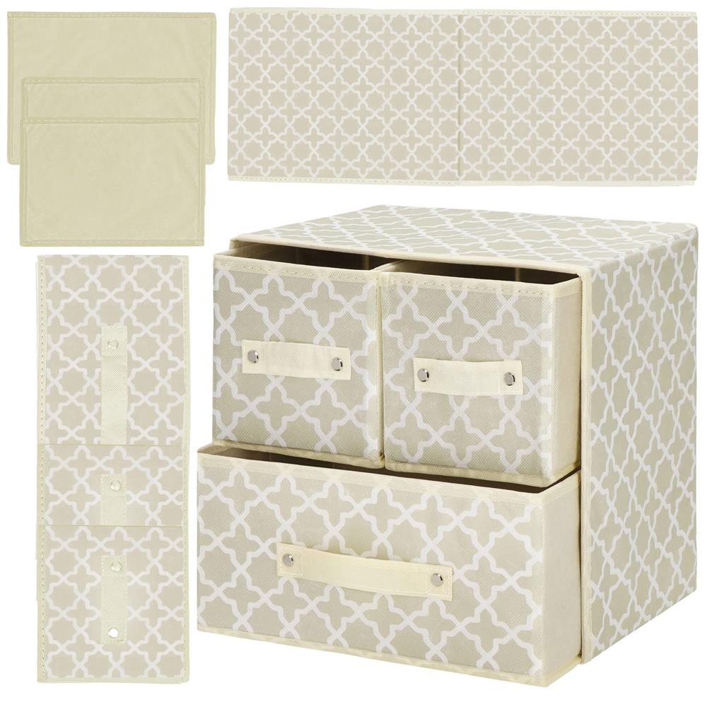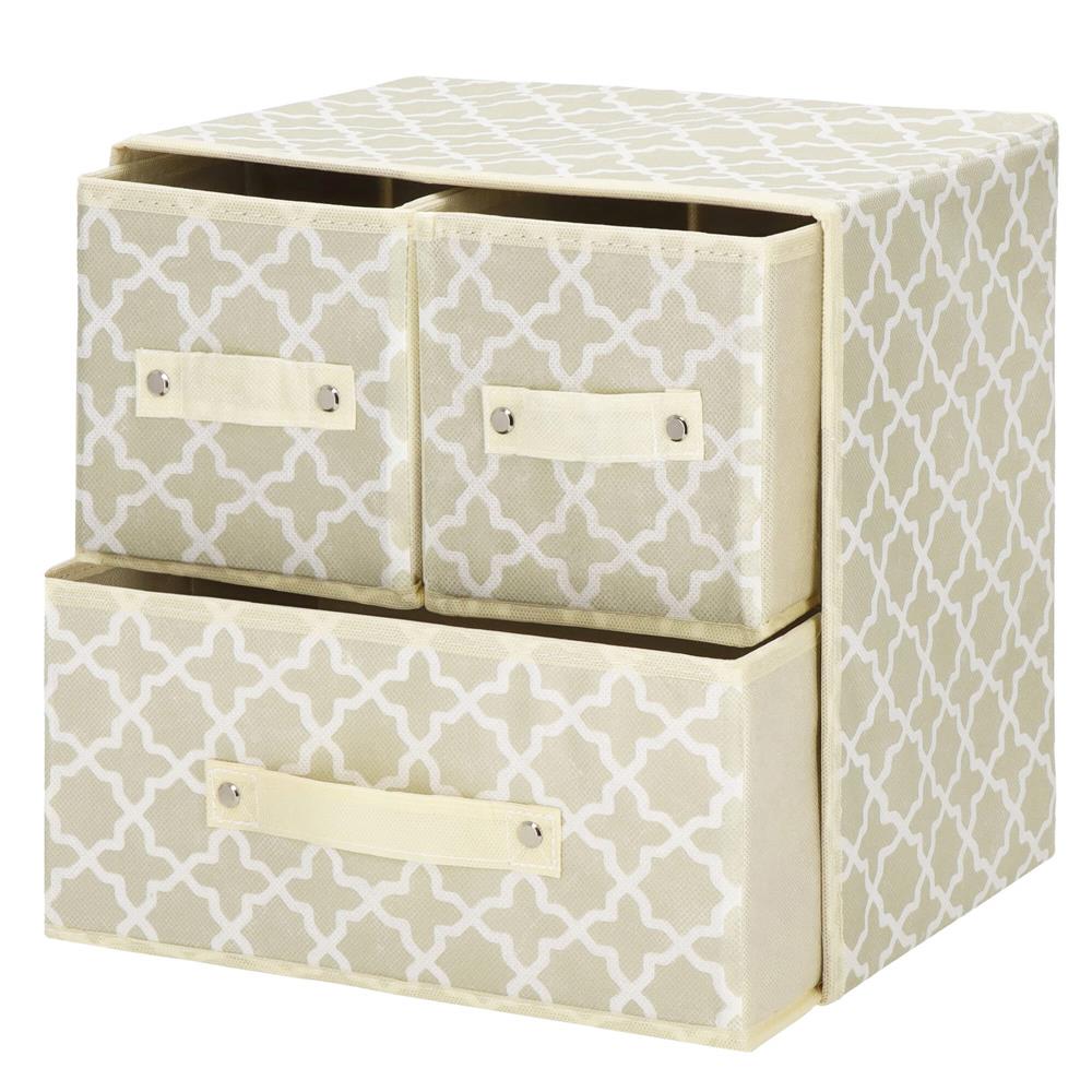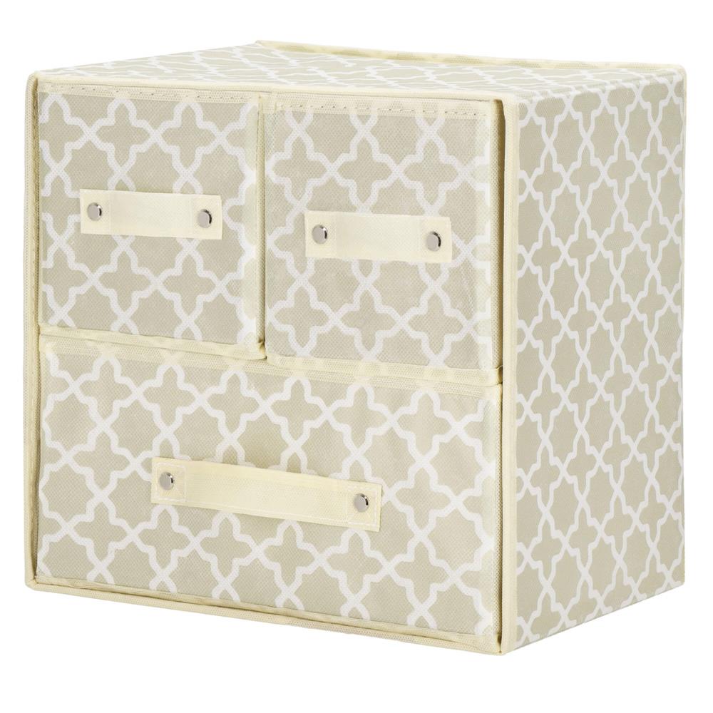 Organizator dulap tip lada cu 3 sertare, 31x31x22cm, cu model, bej
