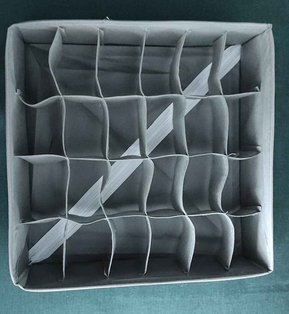 – 24 rekesszel ellátott zokni, fehérnemű tárolására;