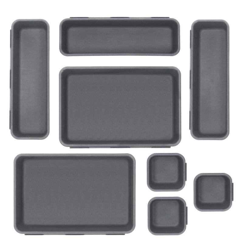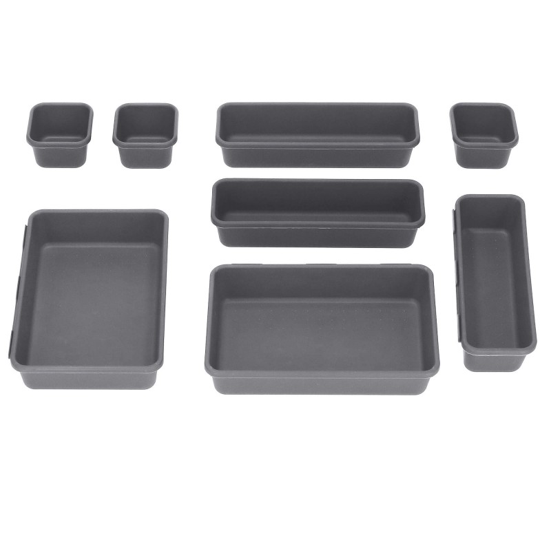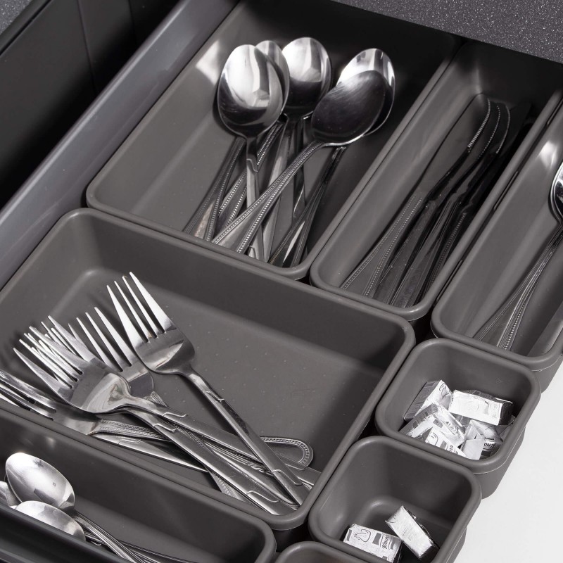 Am cumpărat trei seturi gri și am reușit în sfârșit să umplu spatiile din sertare pentru că cele standard nu se potriveau!