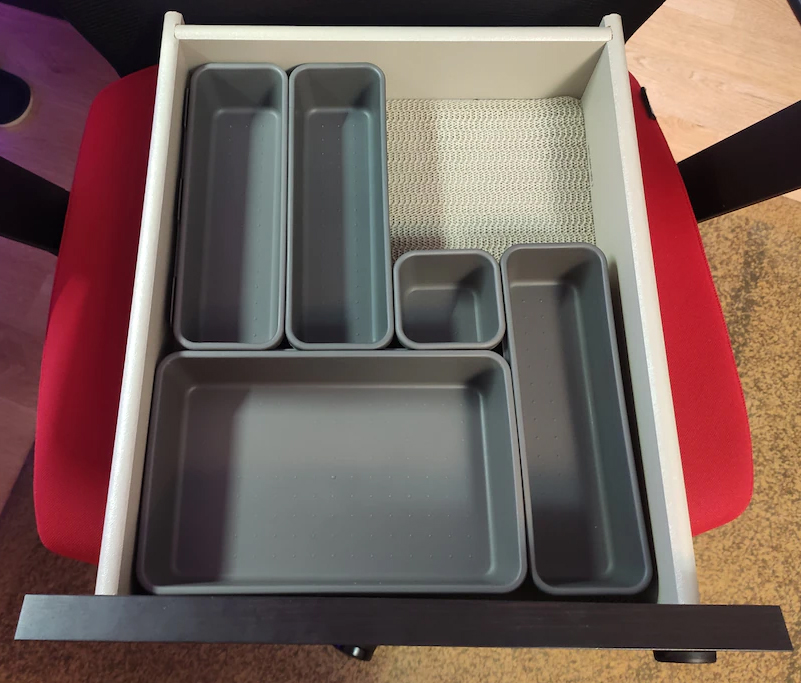 Am adaugat mai intai un „Covoras antiderapant pentru sertar” si peste el cutiile.